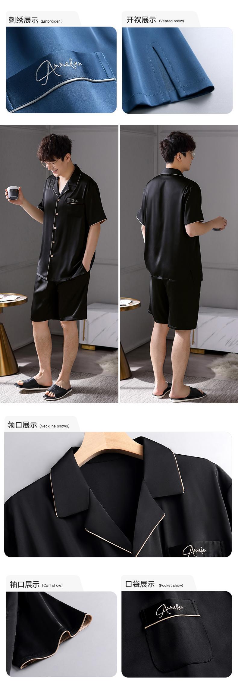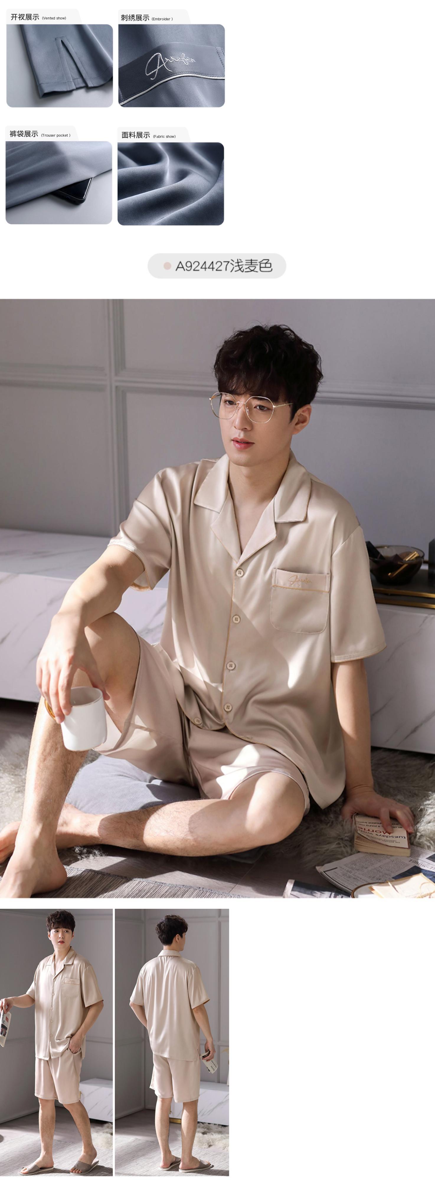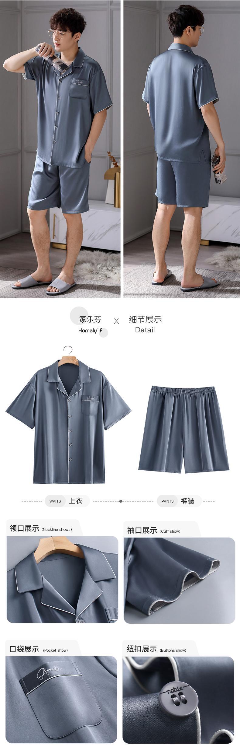 Carrefineパジャマメンズ夏夏シルクアイスシルク半袖ショーツホームサービスメンズ薄手シミュレーションシルク jial32963274055