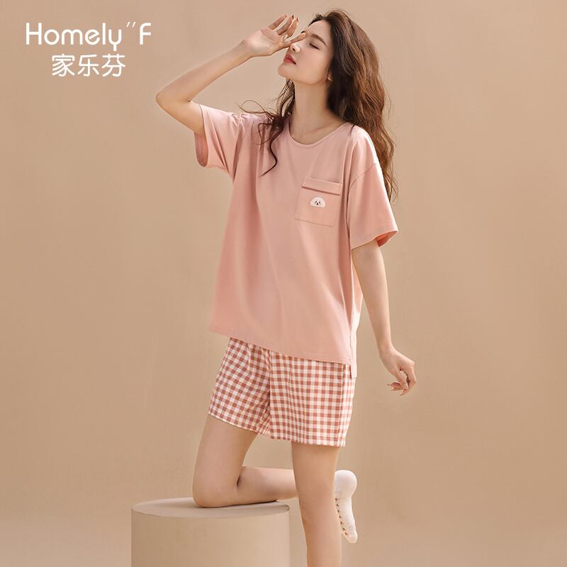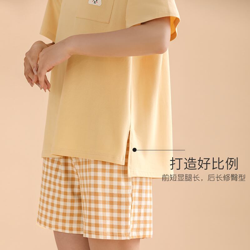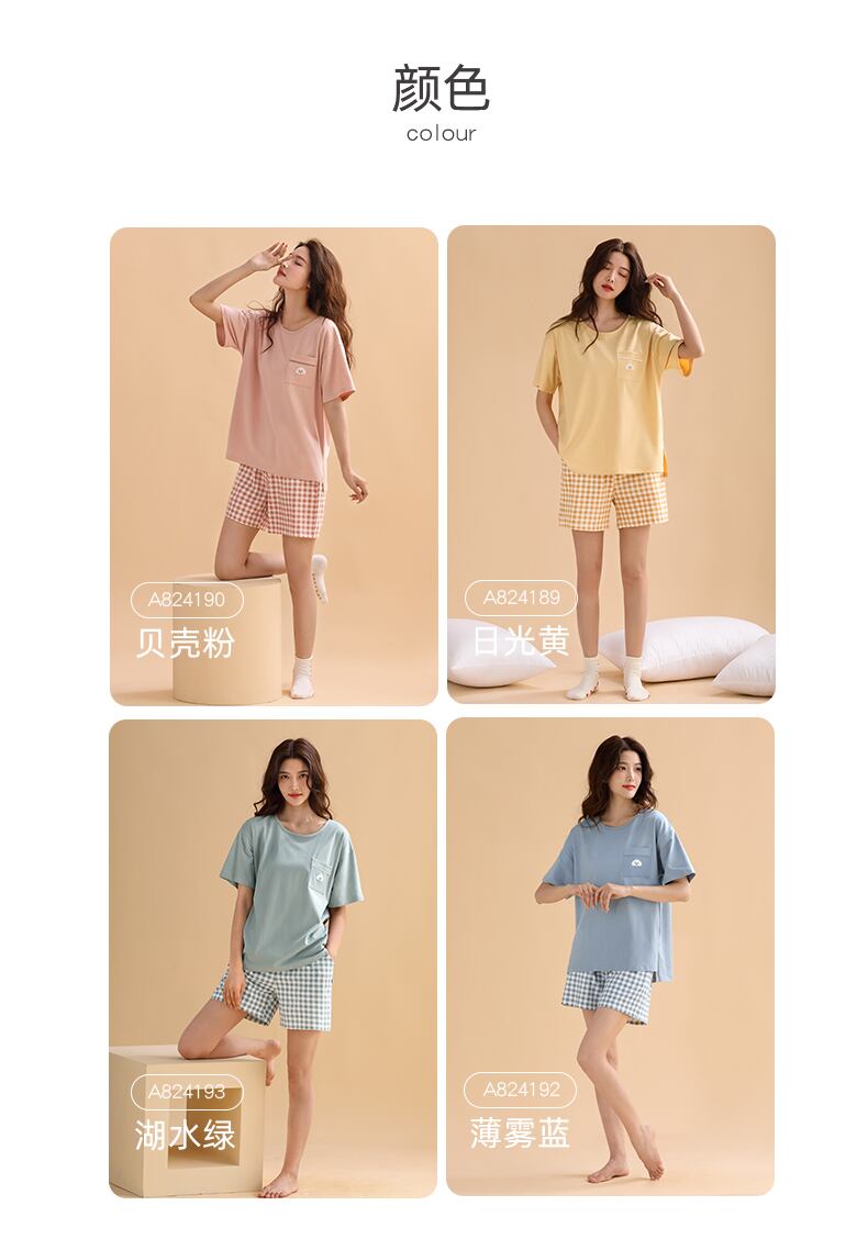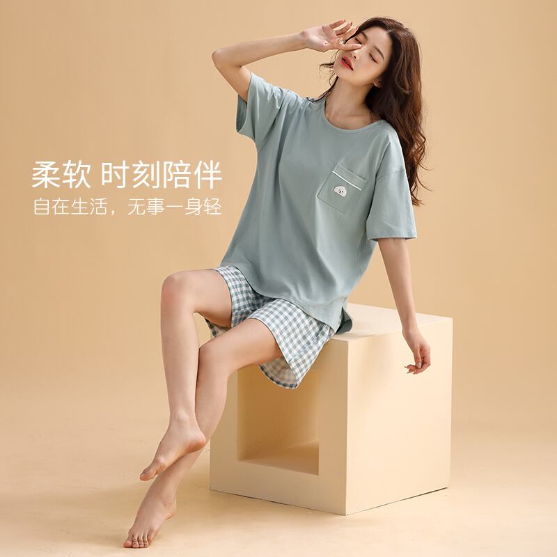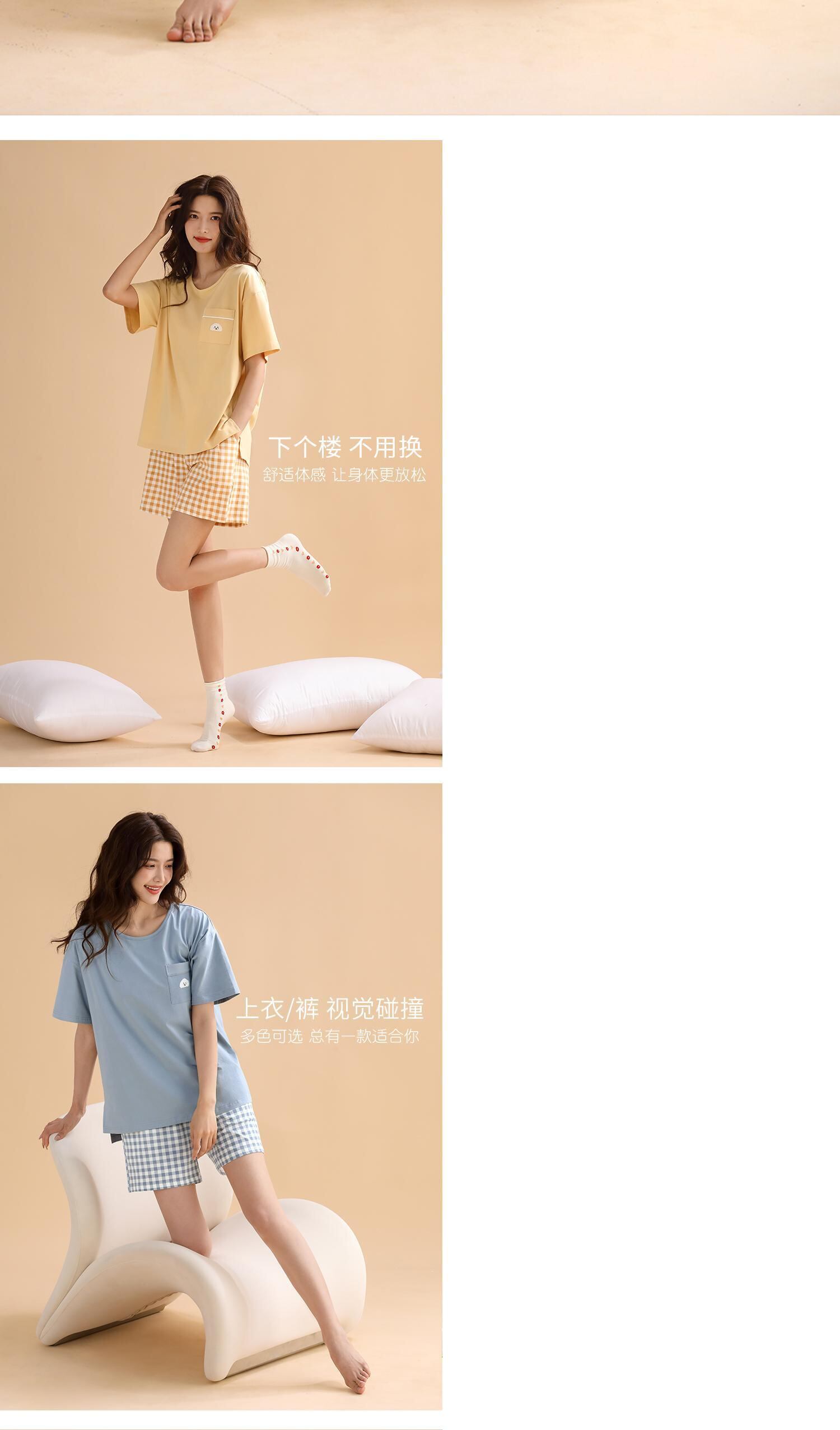 【やわらかい感じ】Carrefineパジャマレディースサマーコットン半袖ショーツ家庭服夏夏薄手のスーツ jial81794421862