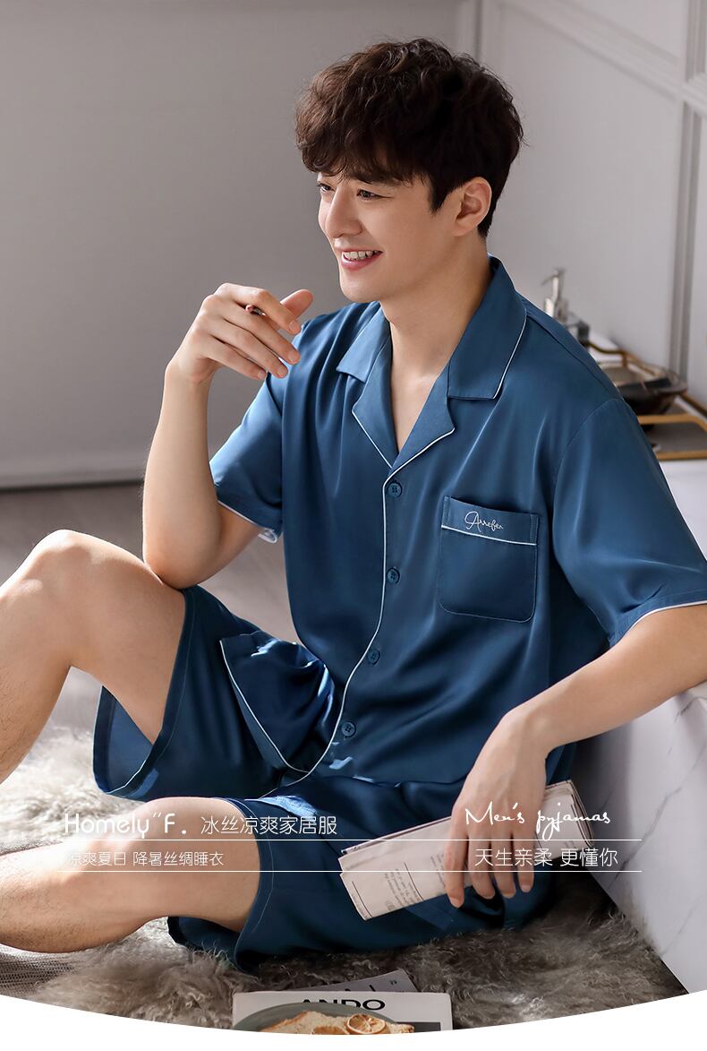 Carrefineパジャマメンズ夏夏シルクアイスシルク半袖ショーツホームサービスメンズ薄手シミュレーションシルク jial58555876103