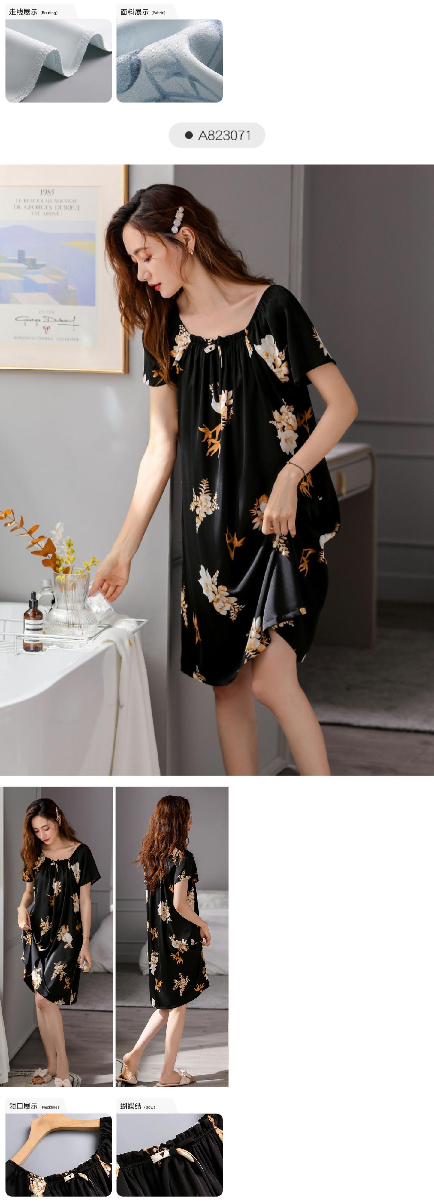 Carrefineネグリジェパジャマ夏夏夏アイスシルク半袖シルクプラスサイズママ薄い長いセクション jial9590674205