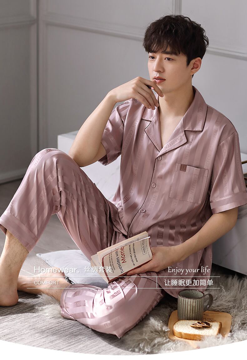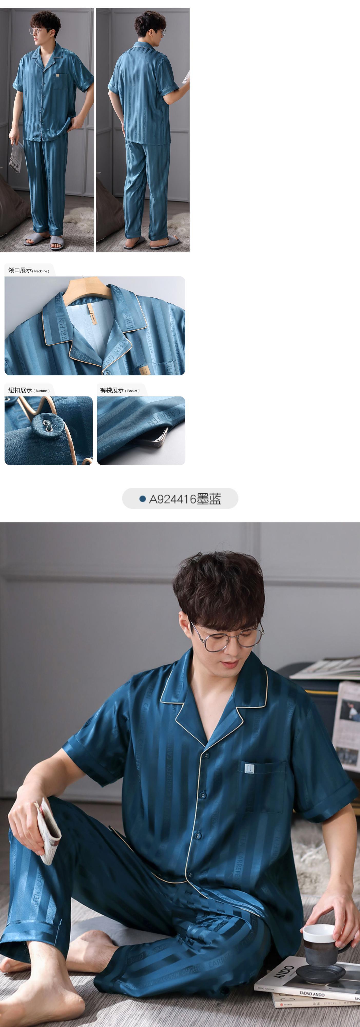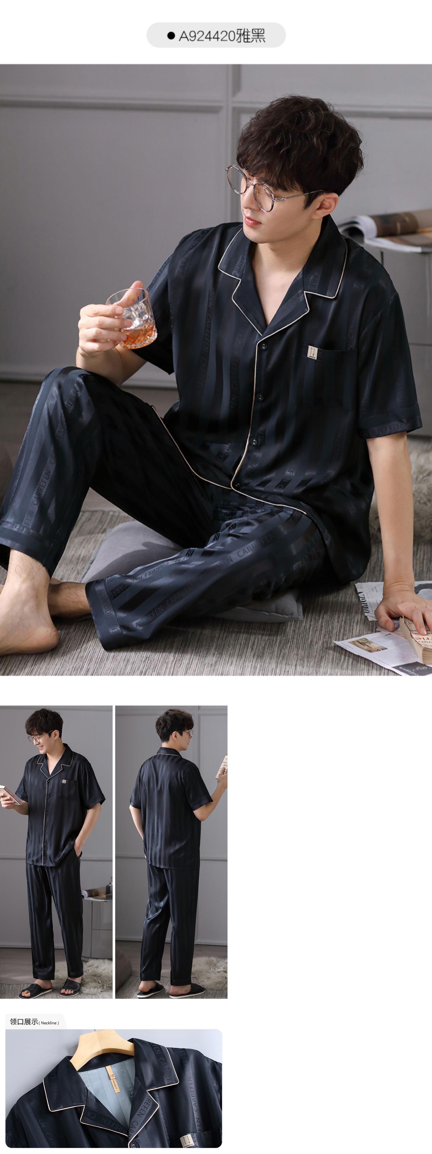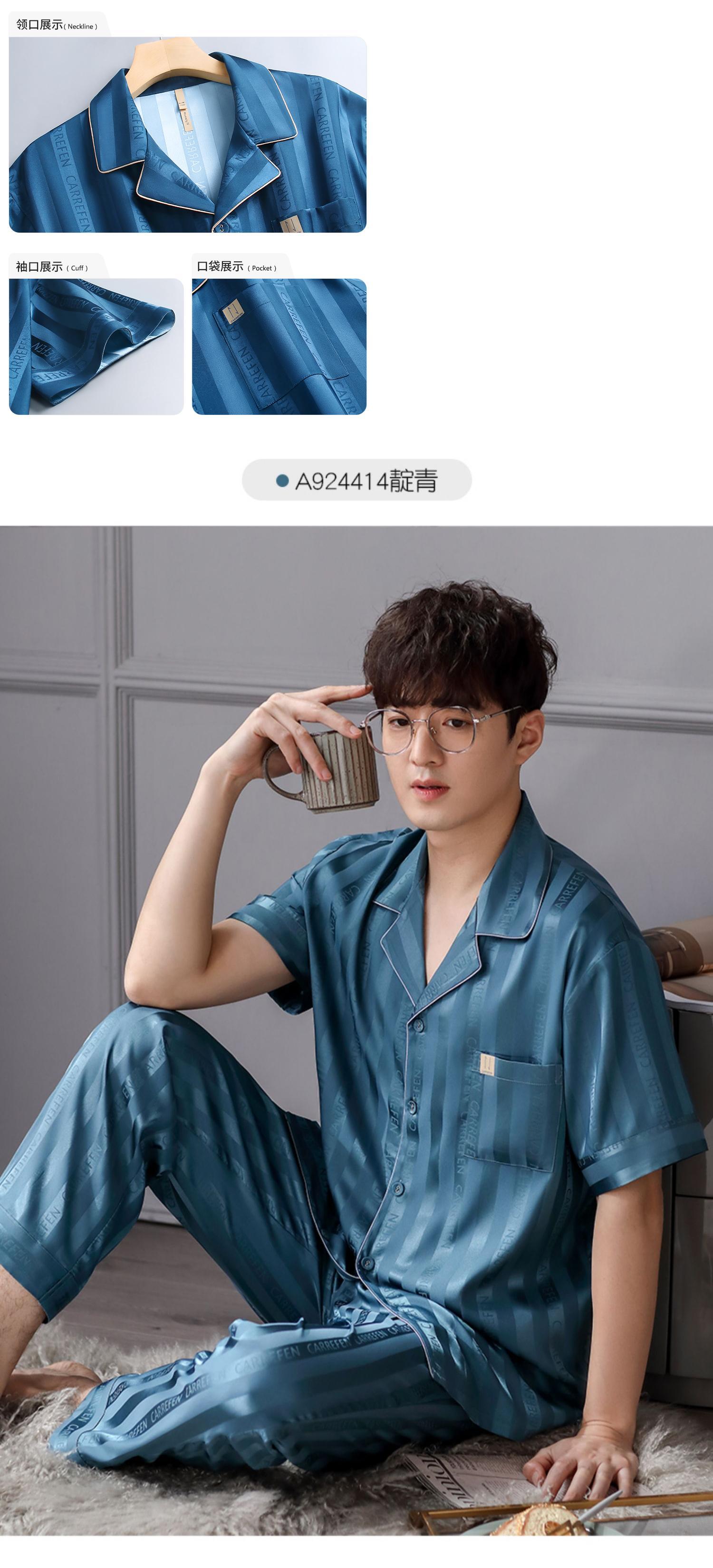 Carrefineパジャマメンズ夏夏シルクアイスシルク半袖パンツホームサービスメンズ薄片シミュレーションシルク jial4698679859