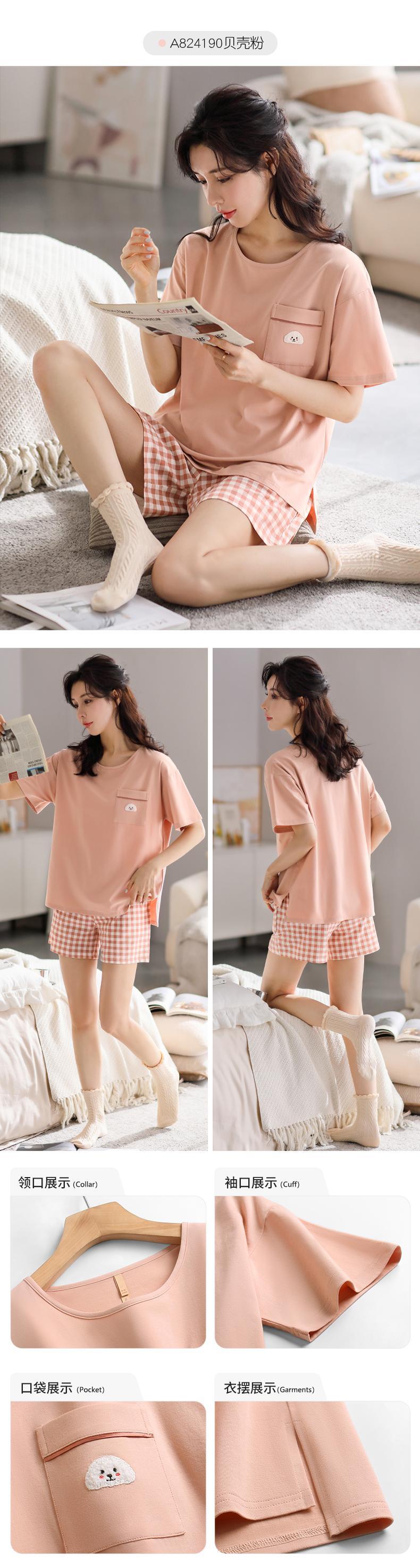 【やわらかい感じ】Carrefineパジャマレディースサマーコットン半袖ショーツ家庭服夏夏薄手のスーツ jial11978088799