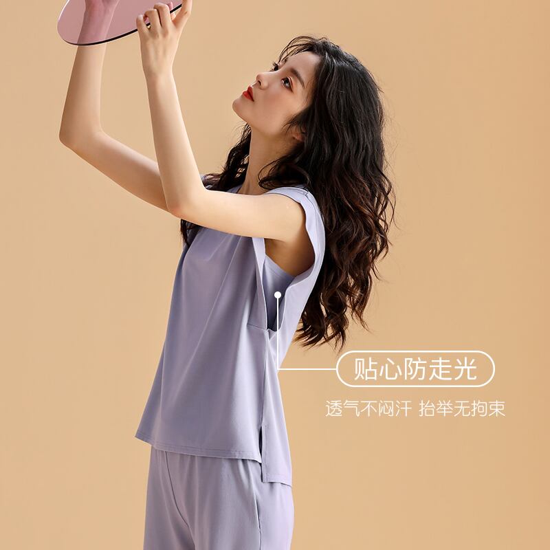 パジャマ夏夏モーダルベストノースリーブホームウェア夏薄いアイスシルクは身につけられる女性になることができます jial65807858571