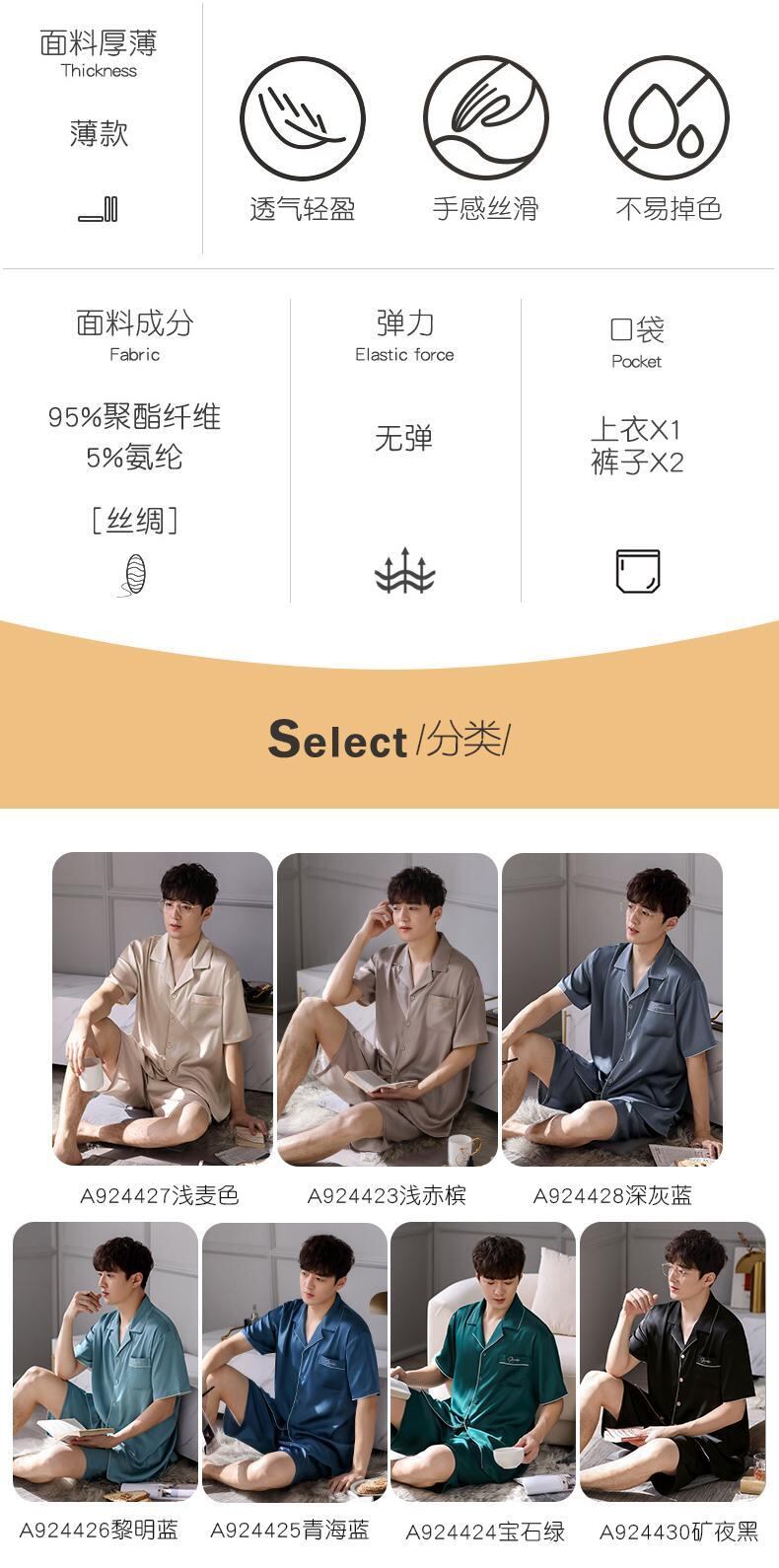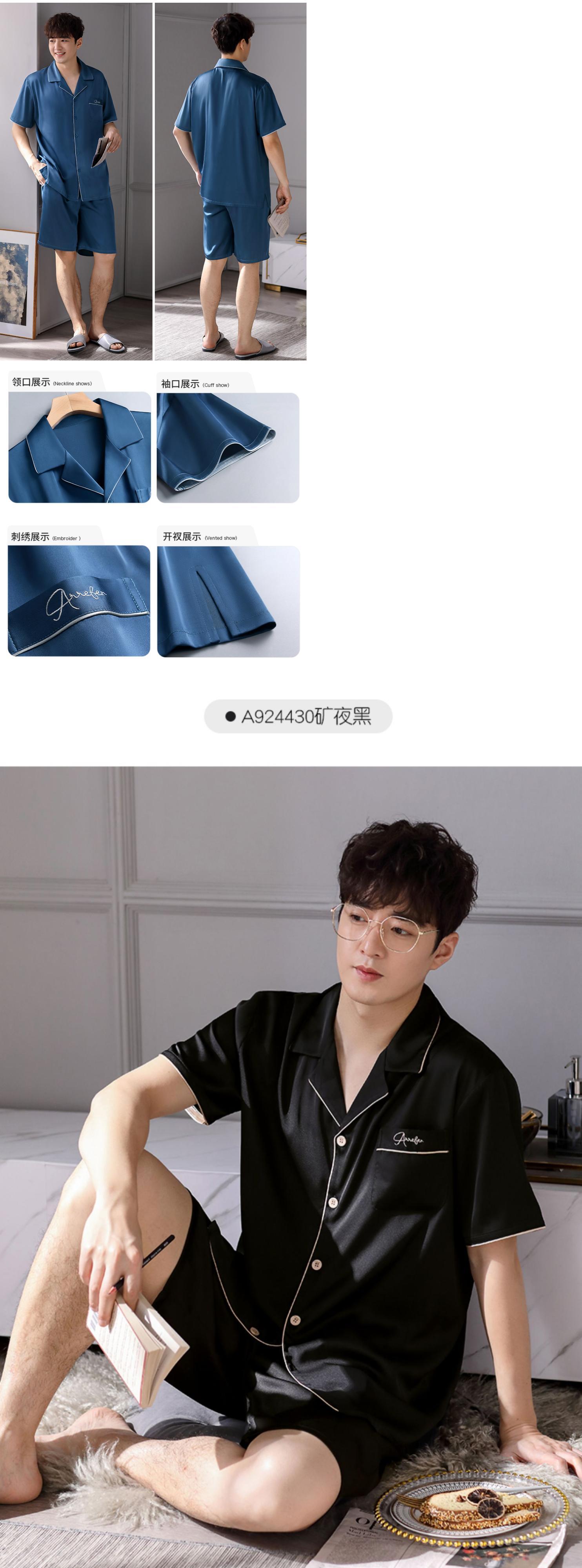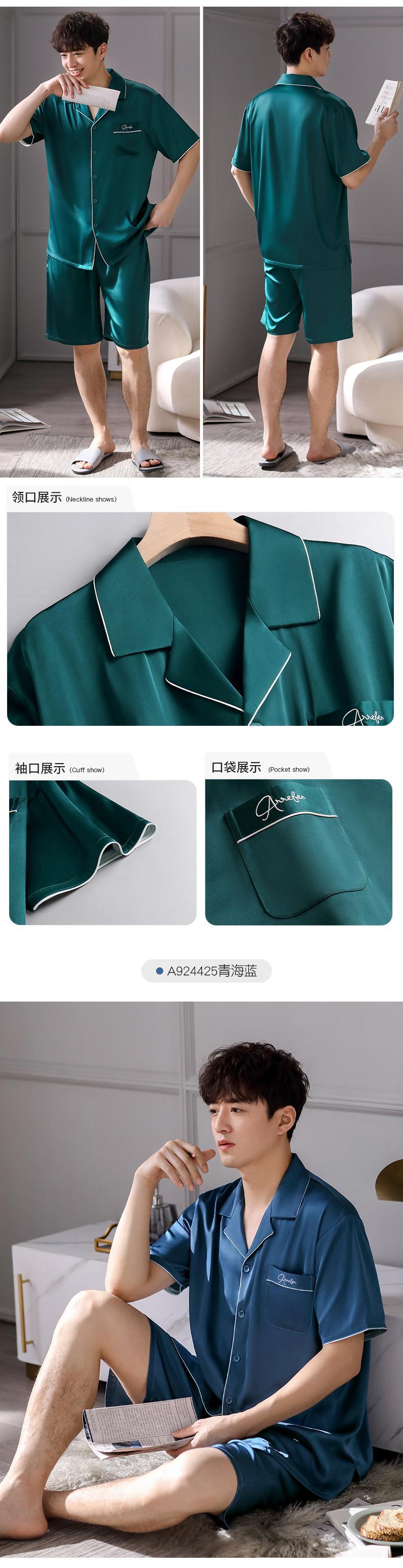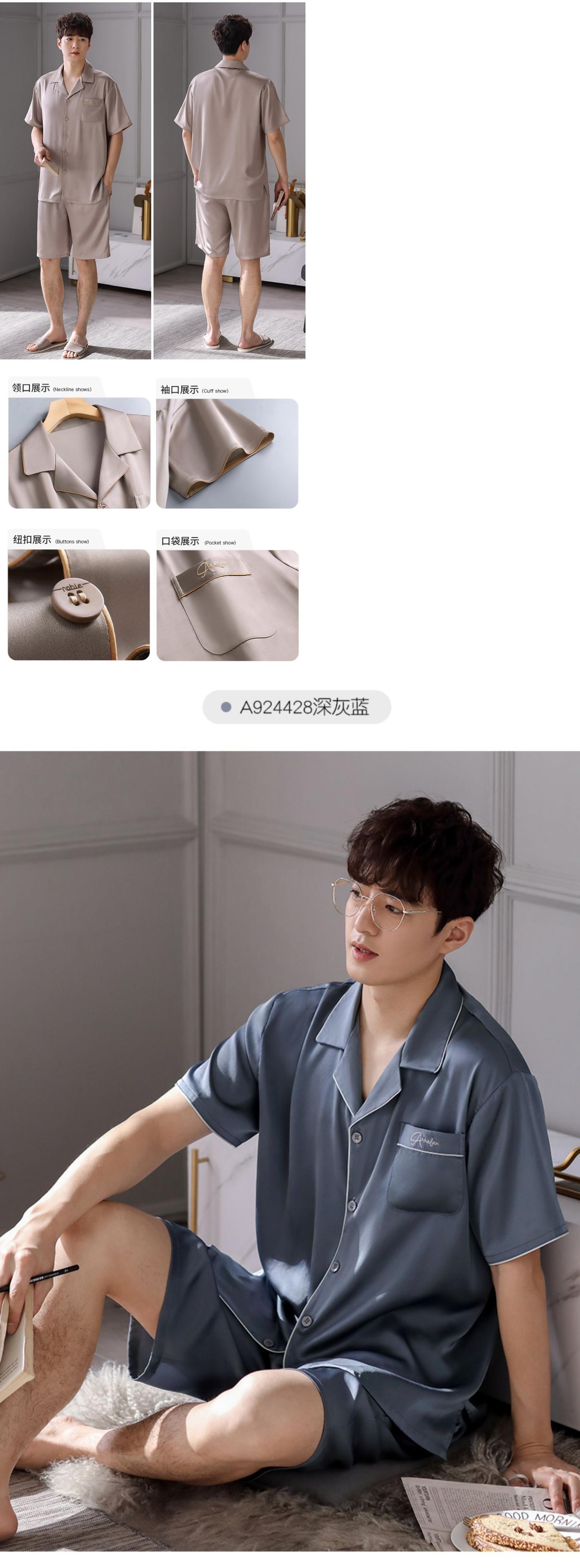 Carrefineパジャマメンズ夏夏シルクアイスシルク半袖ショーツ家庭服メンズ薄手シミュレーションシルク jial18611233214