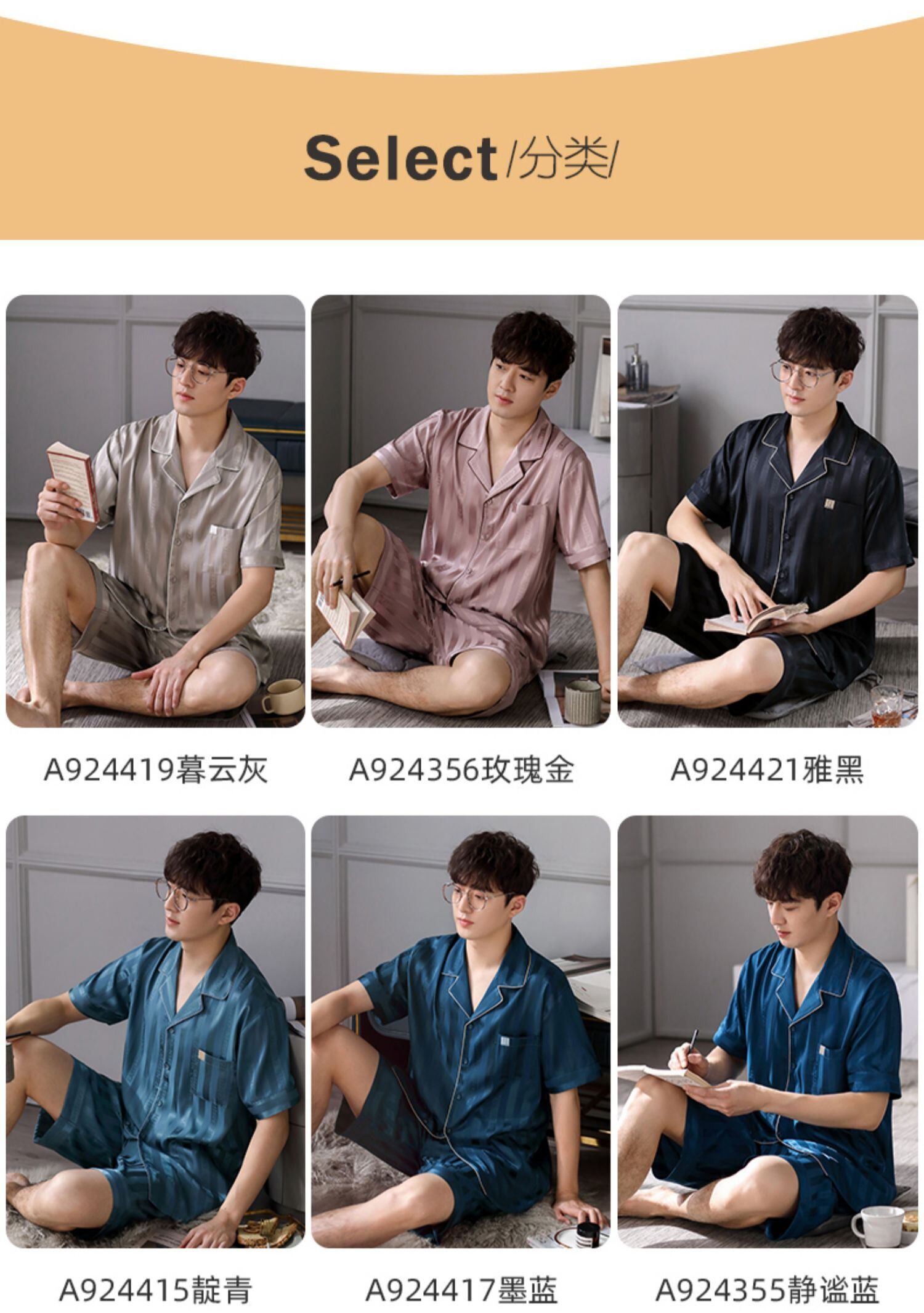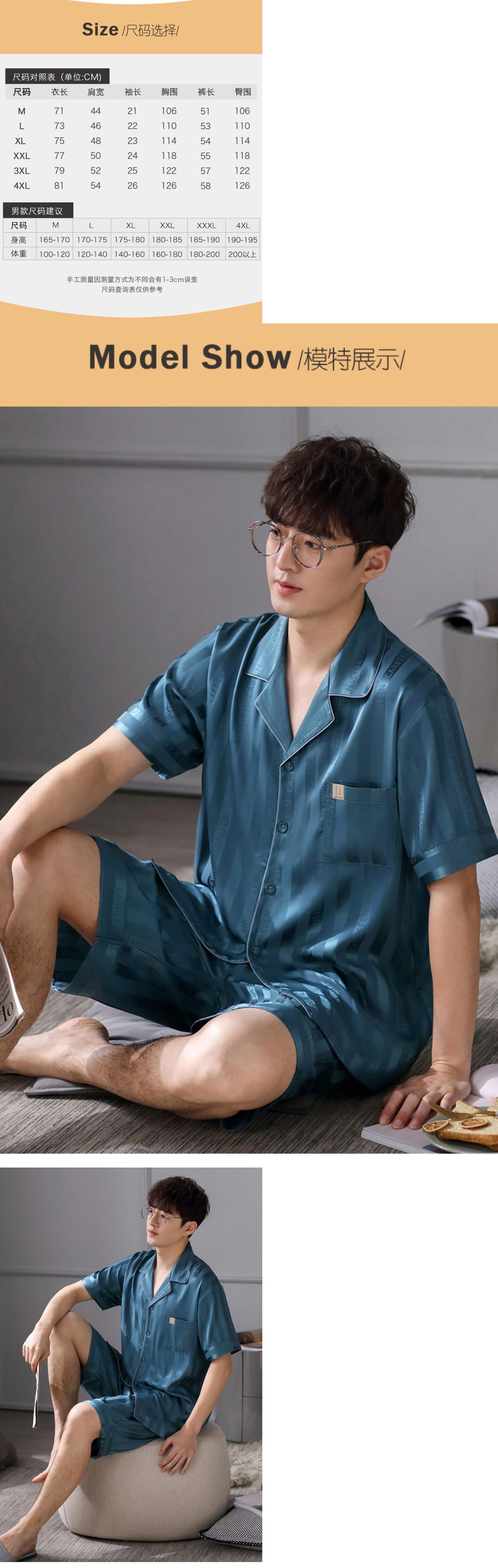 Carrefineパジャマメンズ夏夏シルクアイスシルク半袖ショーツホームサービスメンズ薄手シミュレーションシルク jial14317610526