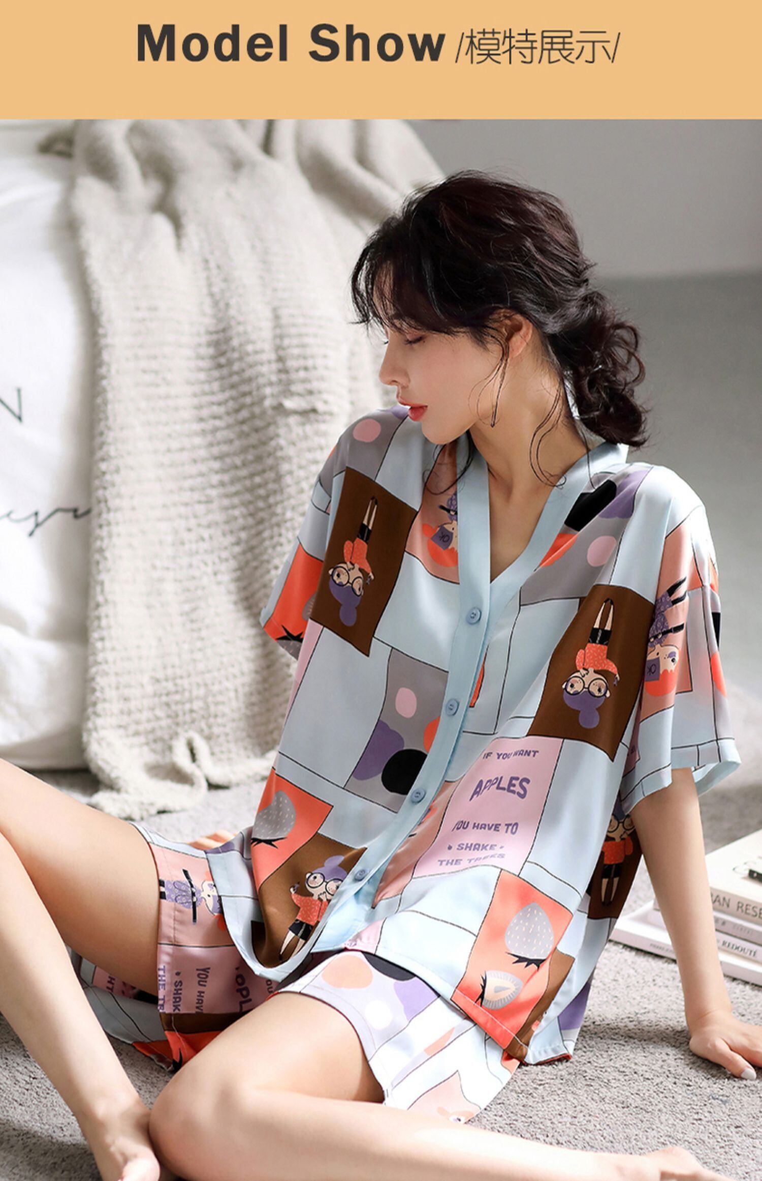 Carrefineパジャマレディースサマーシルクアイスシルク半袖ショーツホームサービスサマー薄肉シミュレーションシルクハイエンドセンス jial87482675016