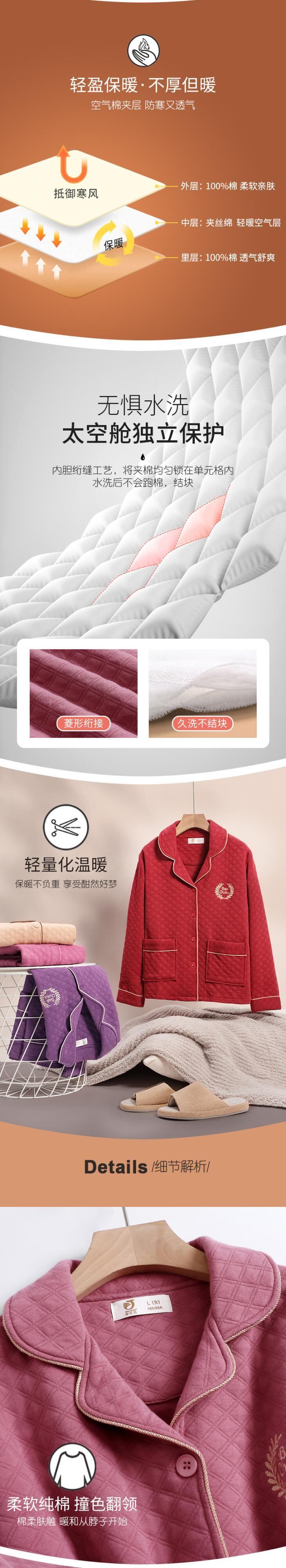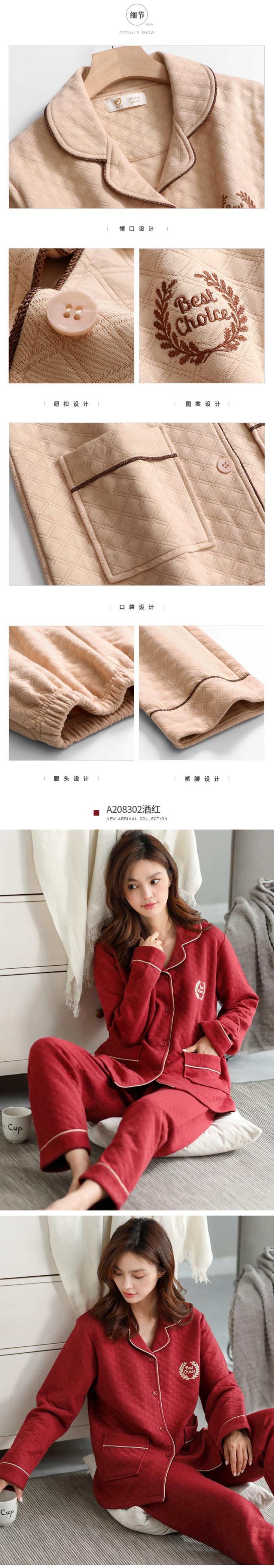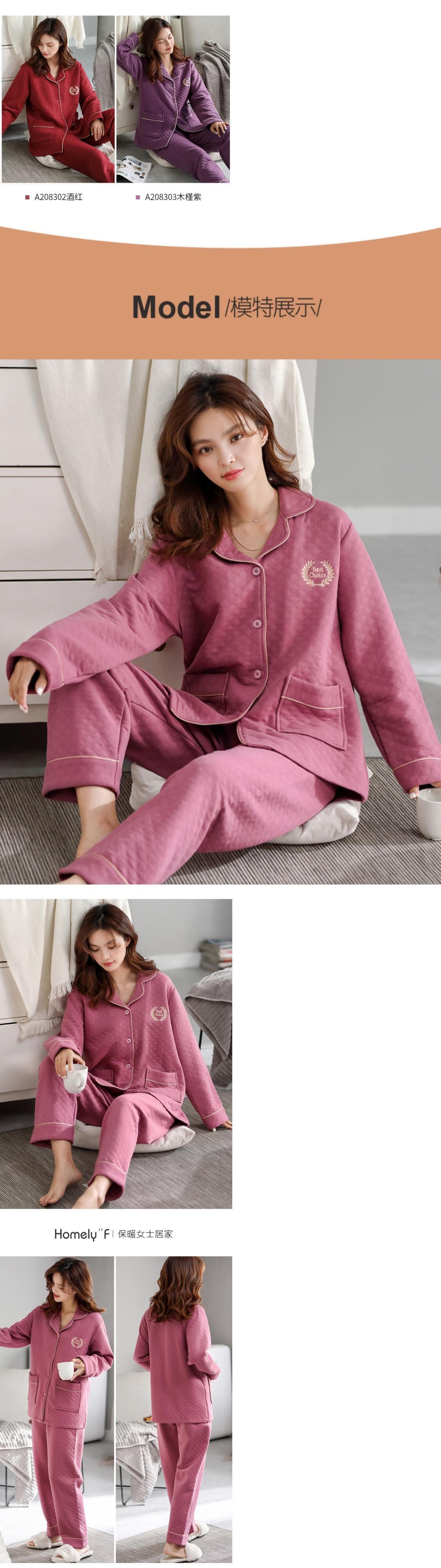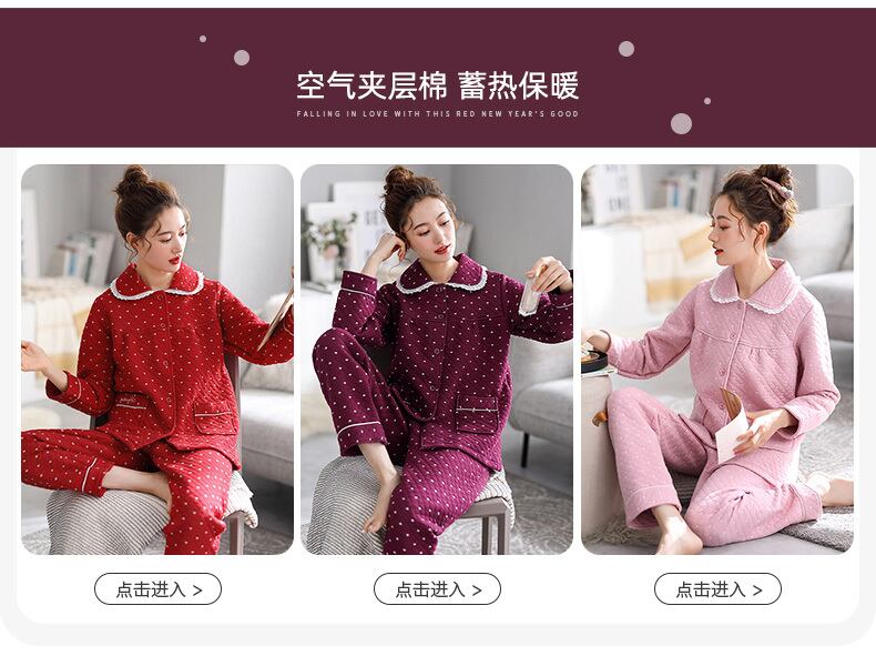 パジャマ女性の春と秋の厚手の綿長袖家庭服秋と冬の薄いサンドイッチキルティングエアコットンスーツ jial82964428949