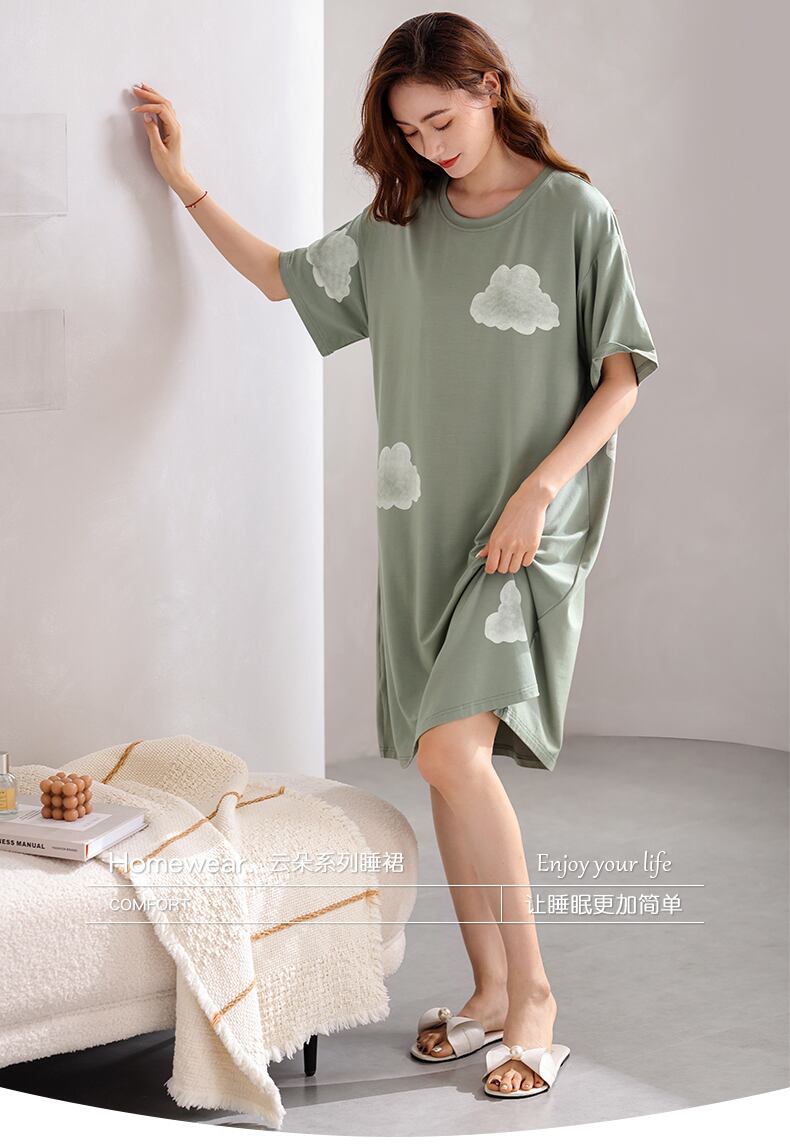 Carrefineネグリジェレディースパジャマサマーモーダル半袖薄片ロングセクションサマーセクション薄片アイスシルクラージサイズ jial96866359908