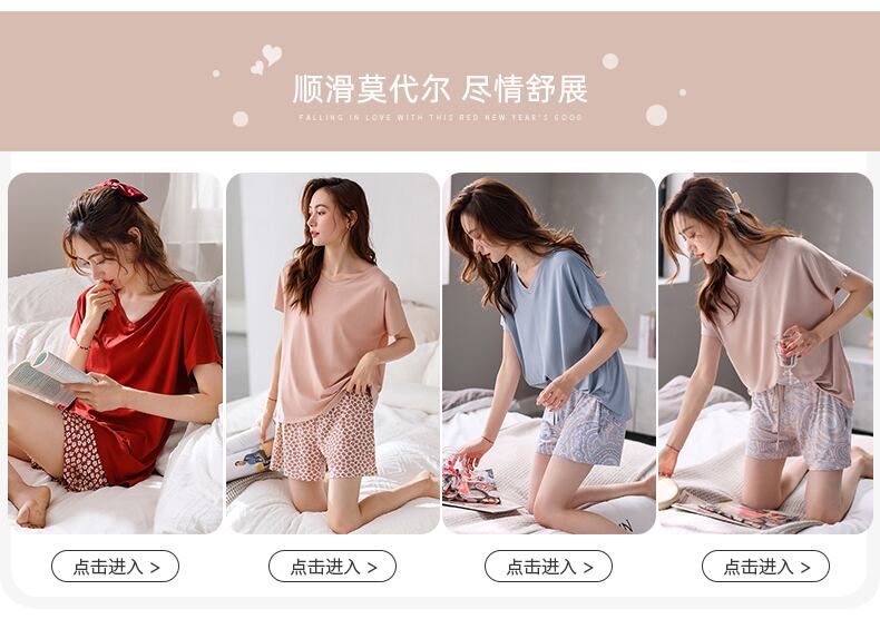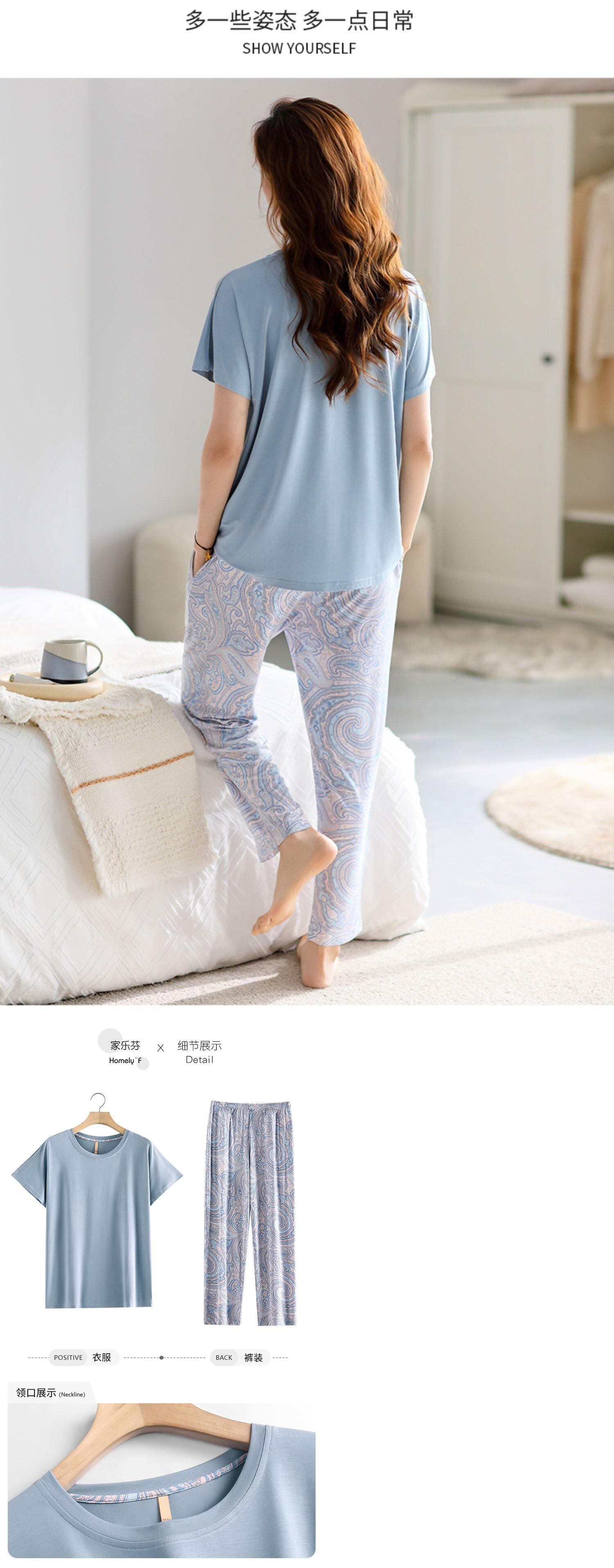 Carrefineパジャマレディース夏夏夏モーダル半袖パンツホームサービス薄いアイスシルクレディーススーツ jial91255144345