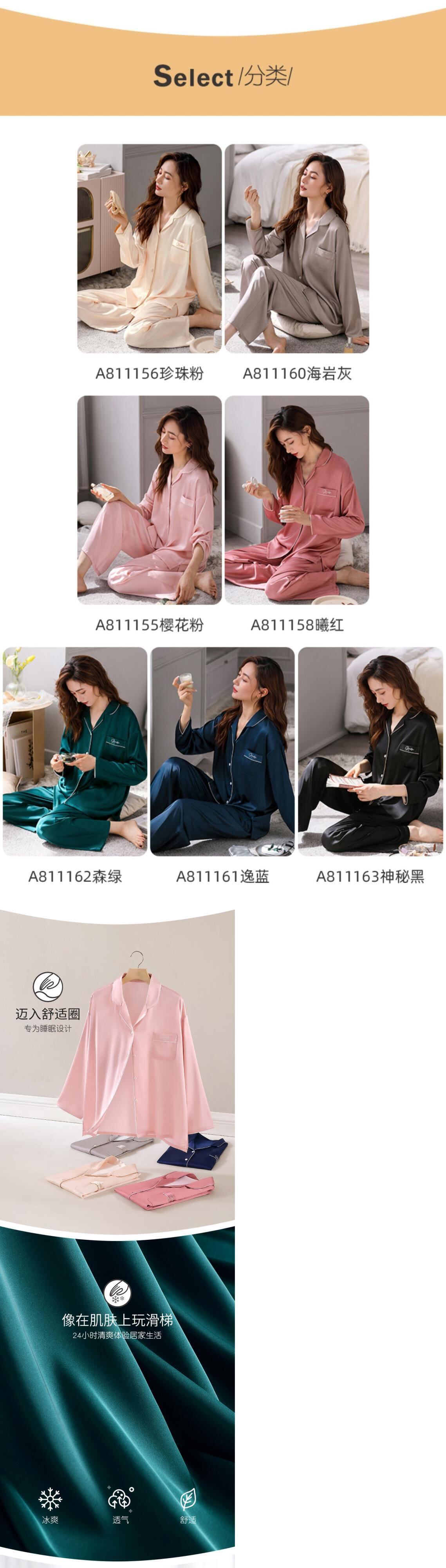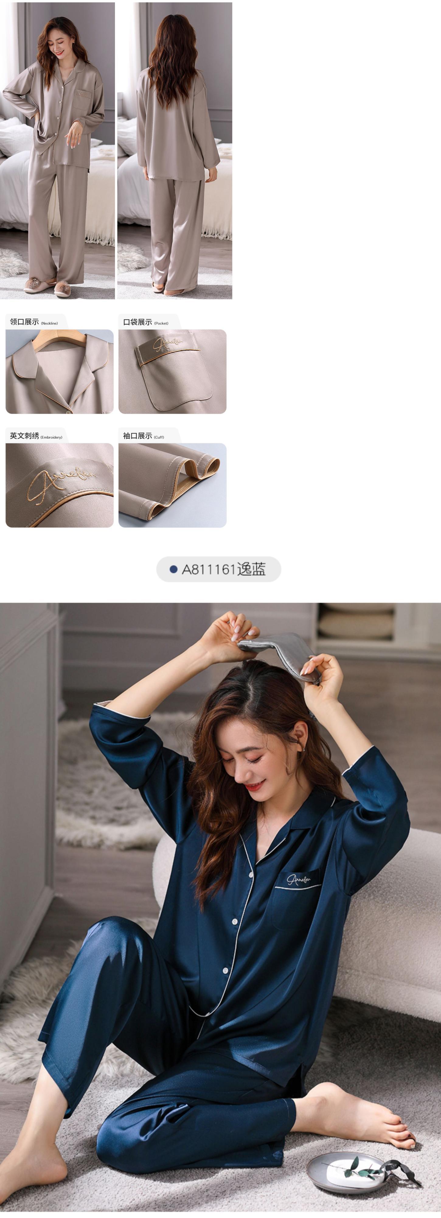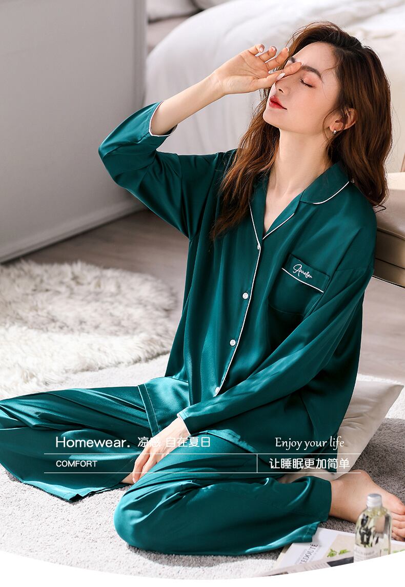Carrefineパジャマレディース夏夏シルクアイスシルク長袖家庭服シミュレーションシルク春と秋の薄いスーツ jial46603433196