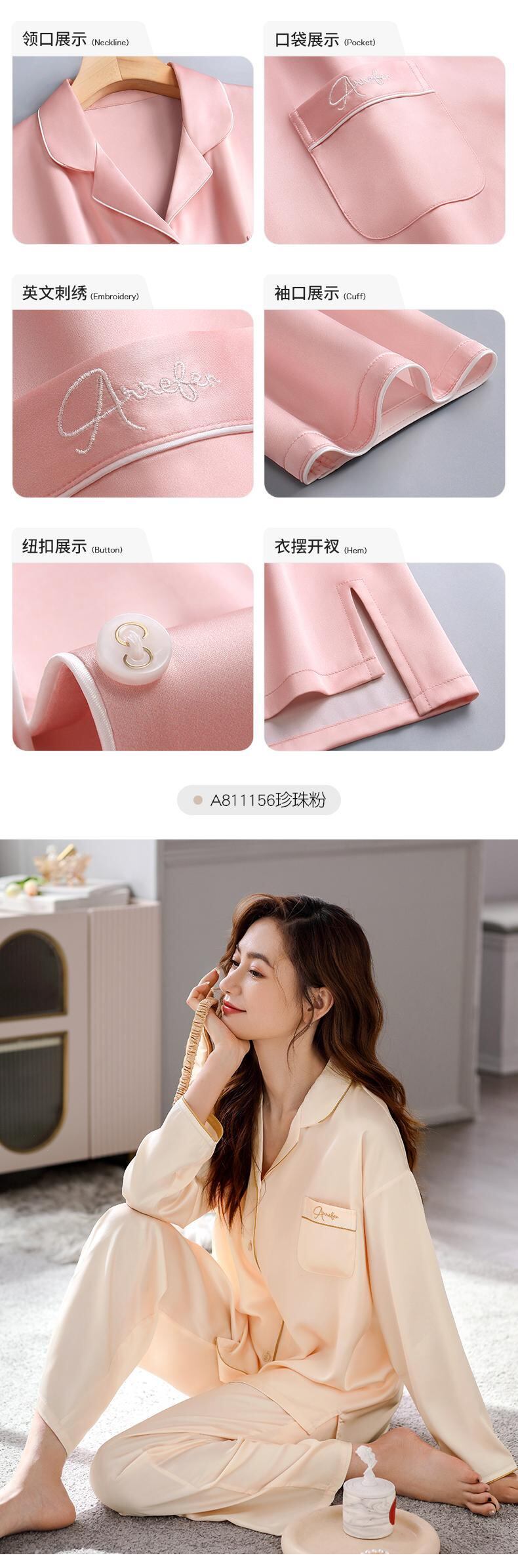 Carrefineパジャマレディース夏夏シルクアイスシルク長袖家庭服シミュレーションシルク春と秋の薄いスーツ jial29496280564