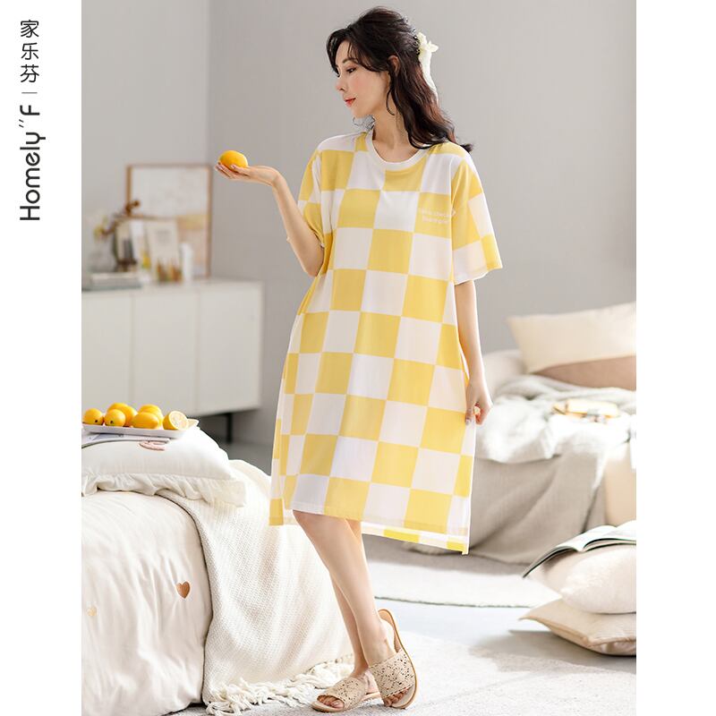 Carrefineネグリジェレディースパジャマ夏綿半袖夏夏長薄セクション大サイズカジュアルは外で着用することができます jial53443549951
