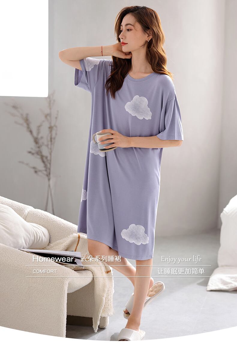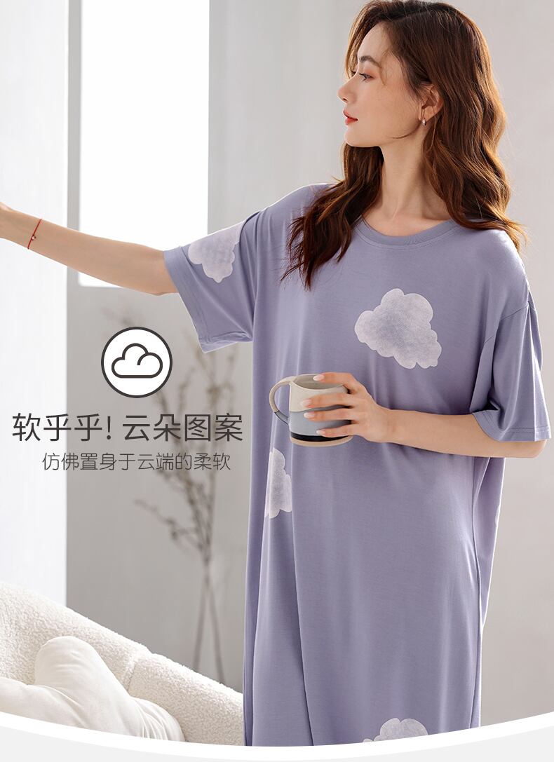 Carrefineネグリジェレディースパジャマサマーモーダル半袖薄片ロングセクションサマーセクション薄片アイスシルクラージサイズ jial52889835958