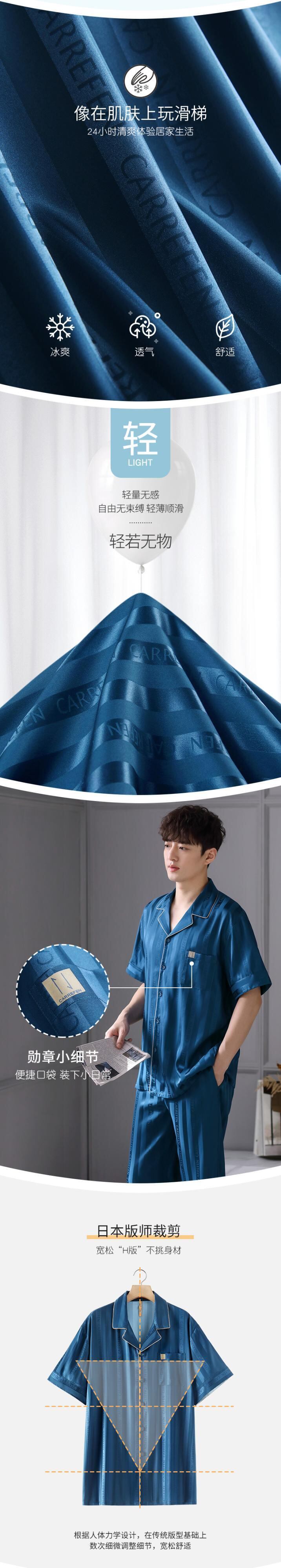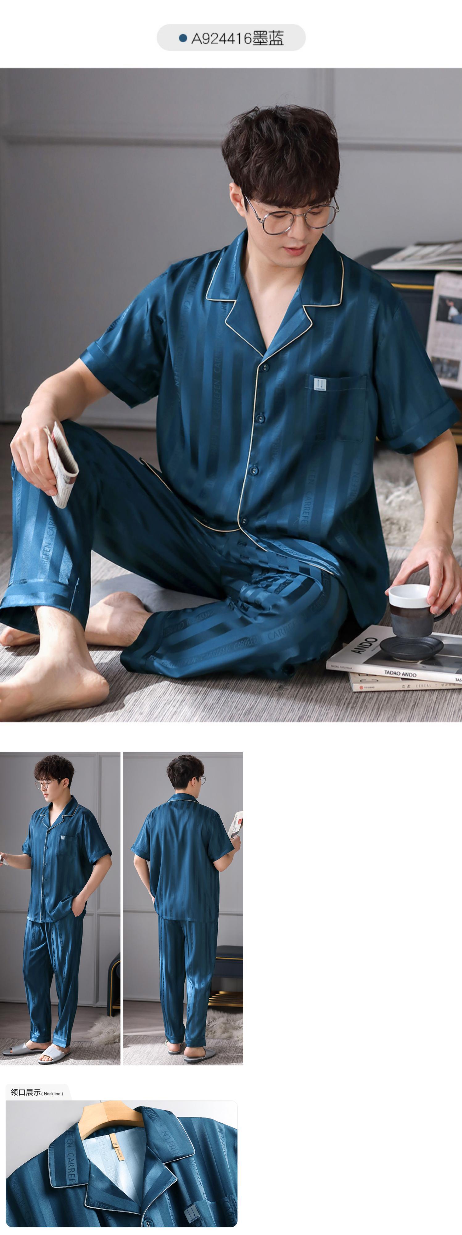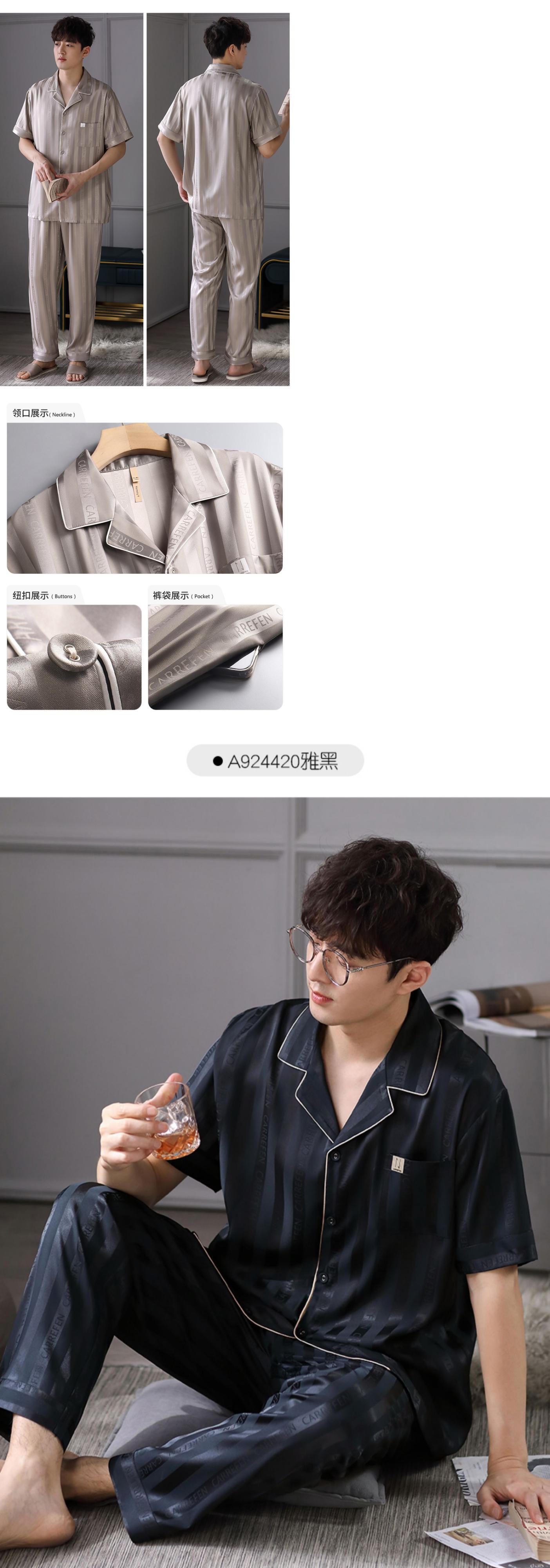 Carrefineパジャマメンズ夏夏シルクアイスシルク半袖パンツホームサービスメンズ薄片シミュレーションシルク jial1515045828