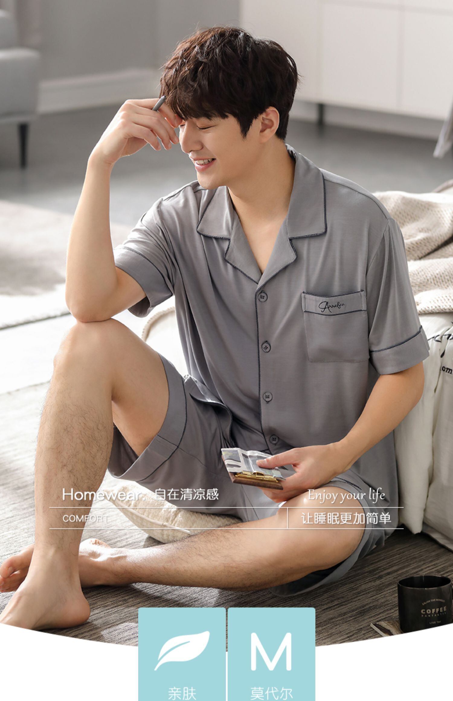 【涼しさ】モーダルパジャマメンズ夏夏半袖ショーツホームサービスメンズ薄手のアイスシルクスーツ jial87822735834