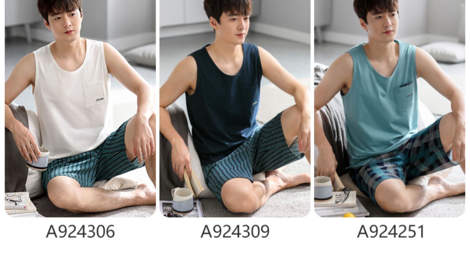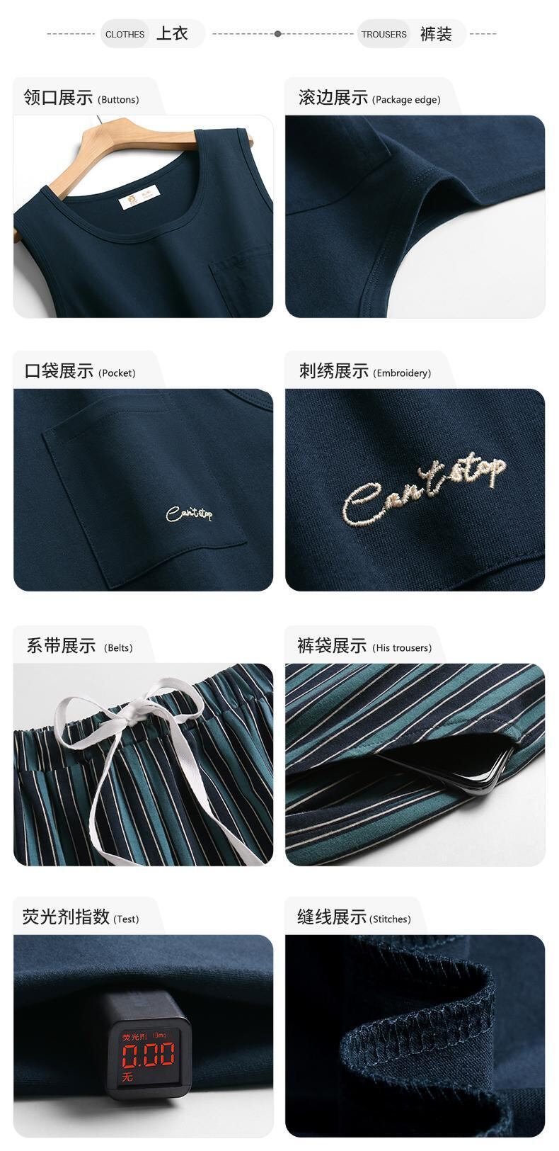 Carrefineパジャマメンズサマーコットンベストノースリーブショーツホームウェアメンズサマーシンラージサイズスーツ jial29582779909