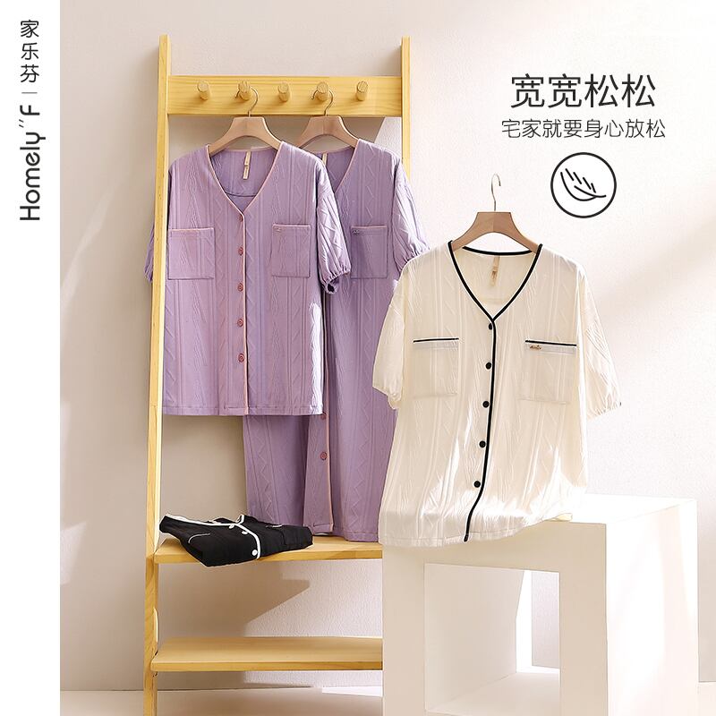 Carrefineネグリジェパジャマ夏夏夏コットン半袖シャツカーディガン薄片プラスサイズ長尺 jial10054407064