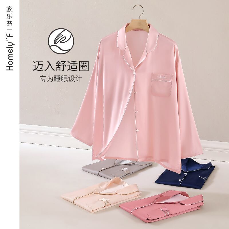 Carrefineパジャマレディース夏夏シルクアイスシルク長袖家庭服シミュレーションシルク春と秋の薄いスーツ jial16001398419