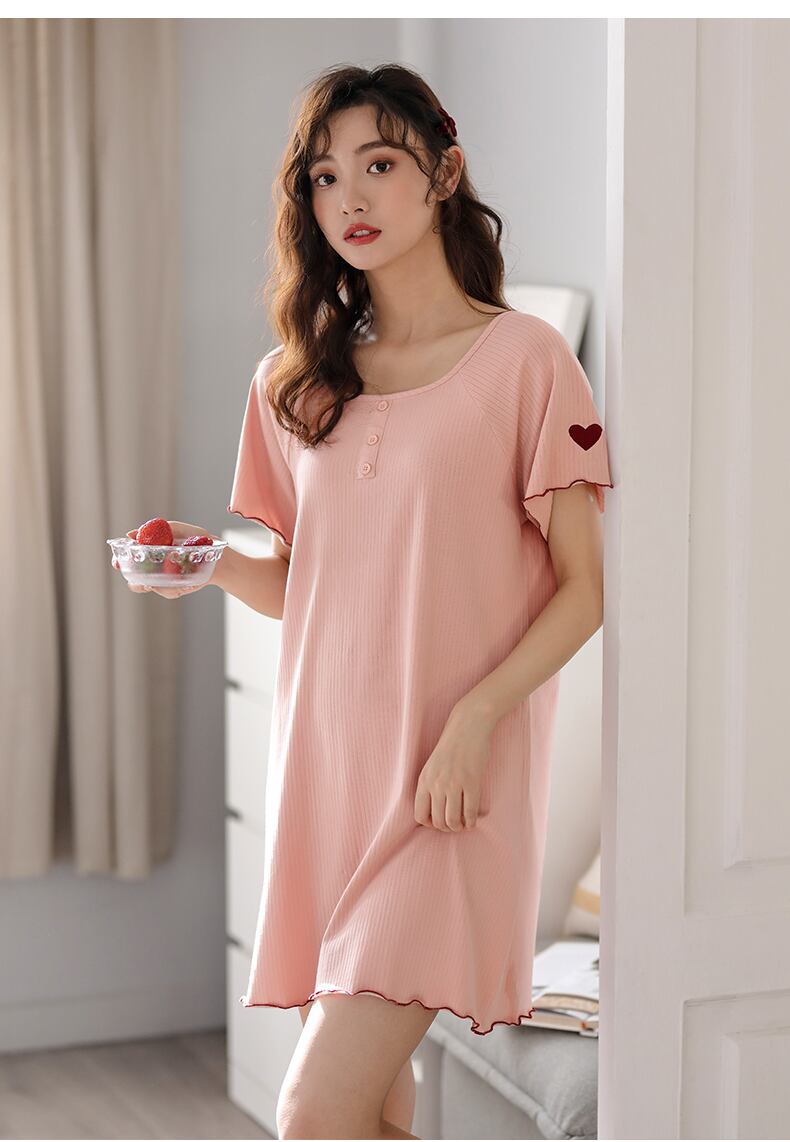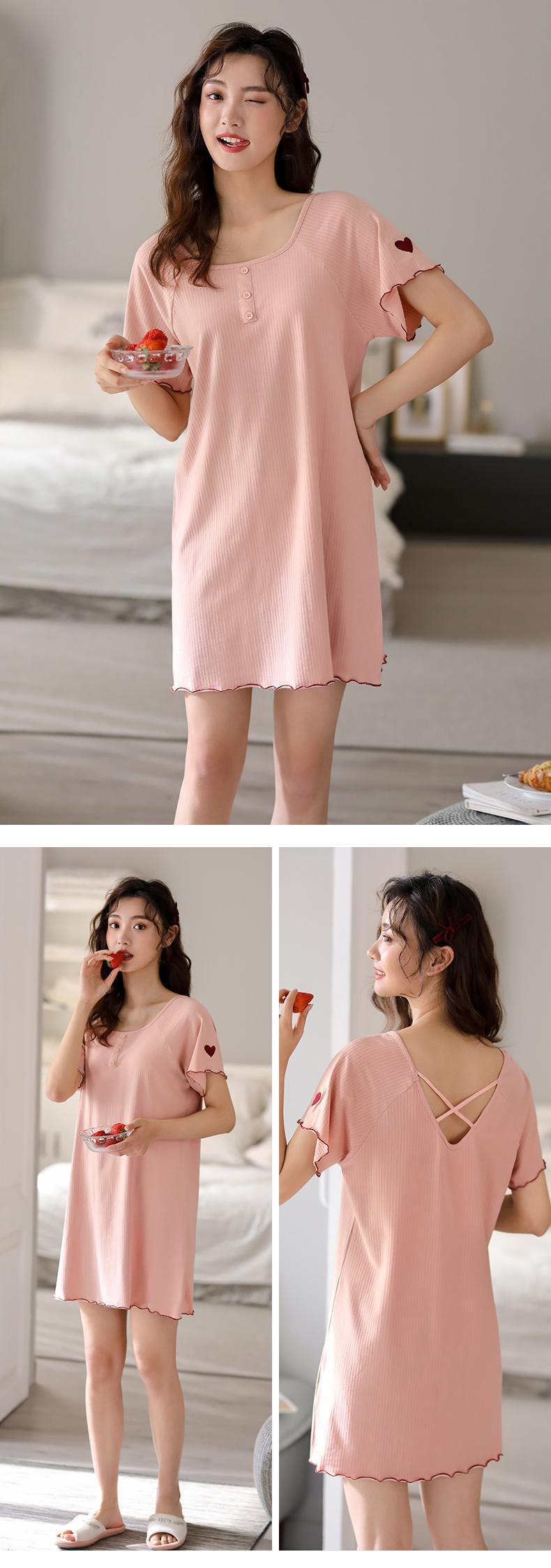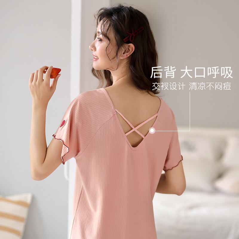 Carrefineナイトドレスパジャマドレス夏夏夏コットン半袖ミッドスカート薄片ピュアデザイア風スモールセクシー jial65151132542