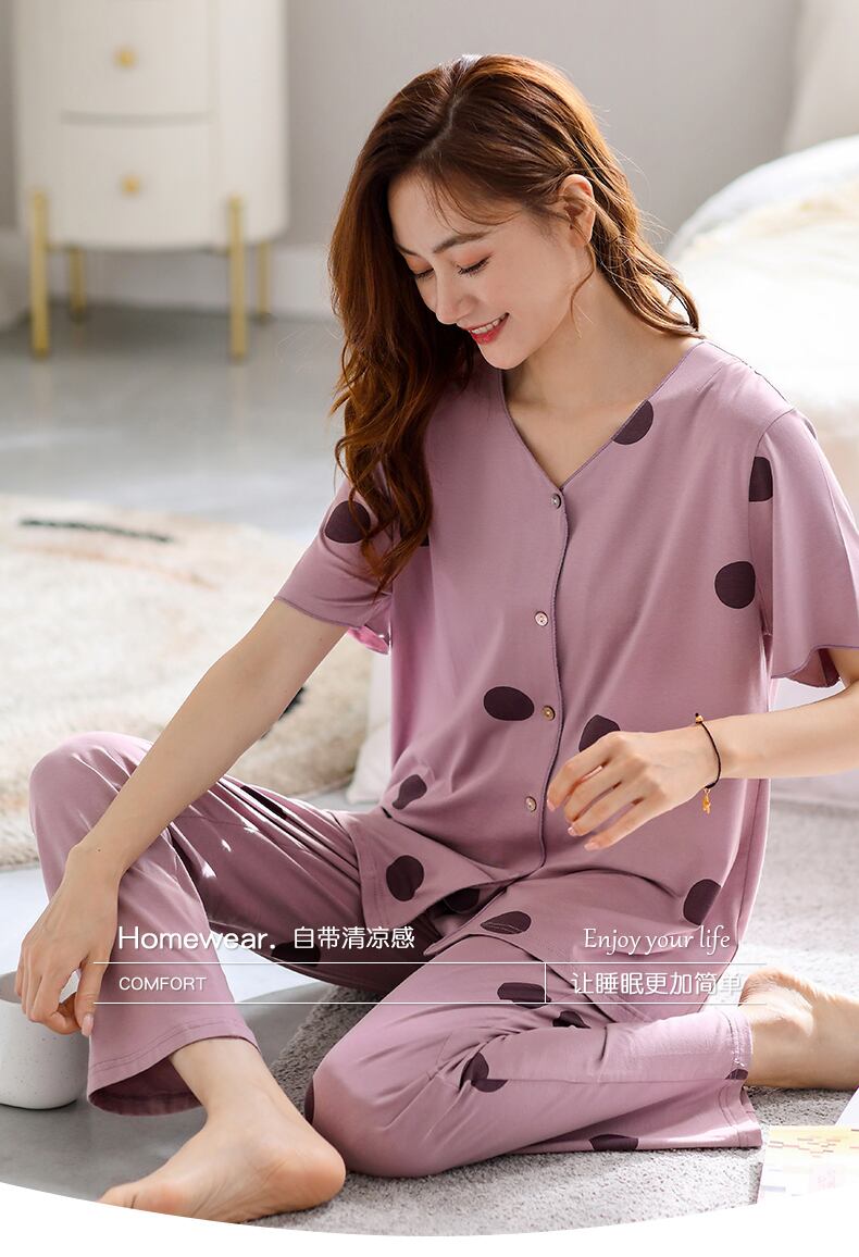 Carrefineパジャマレディース夏夏モーダル半袖パンツ家庭服レディース夏薄切り大サイズスーツ jial55727993269