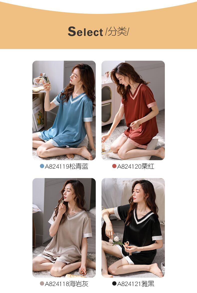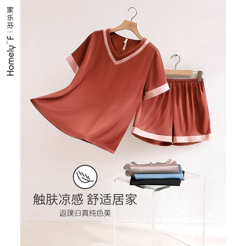 Carrefineパジャマレディース夏夏シルクアイスシルク半袖ショーツ家庭用品シミュレーションシルク薄いスーツ jial23150916208