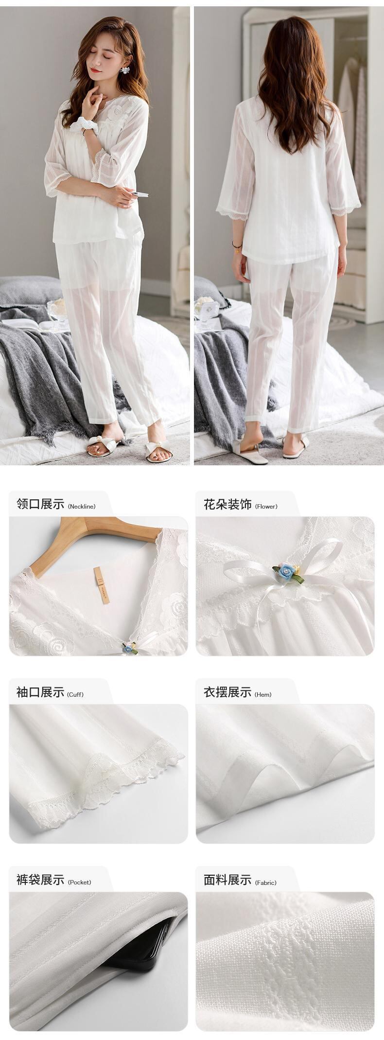 綿ガーゼパジャマレディース春秋綿七分袖長袖家庭服春夏薄手のスーツ jial27144256313
