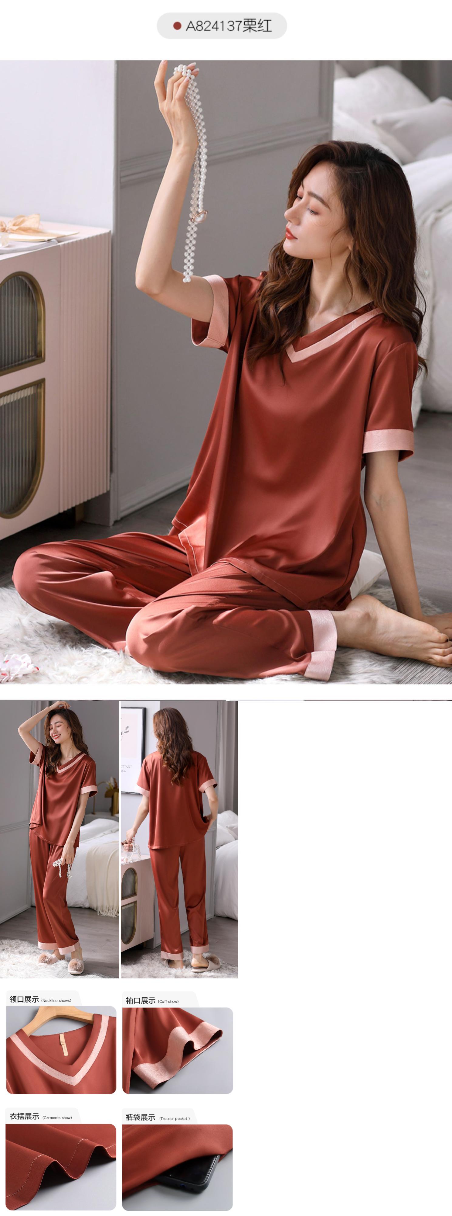 Carrefineパジャマレディース夏夏シルクアイスシルク半袖ズボン家庭服シミュレーションシルク薄手のスーツ jial48824660741