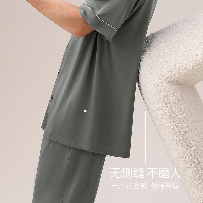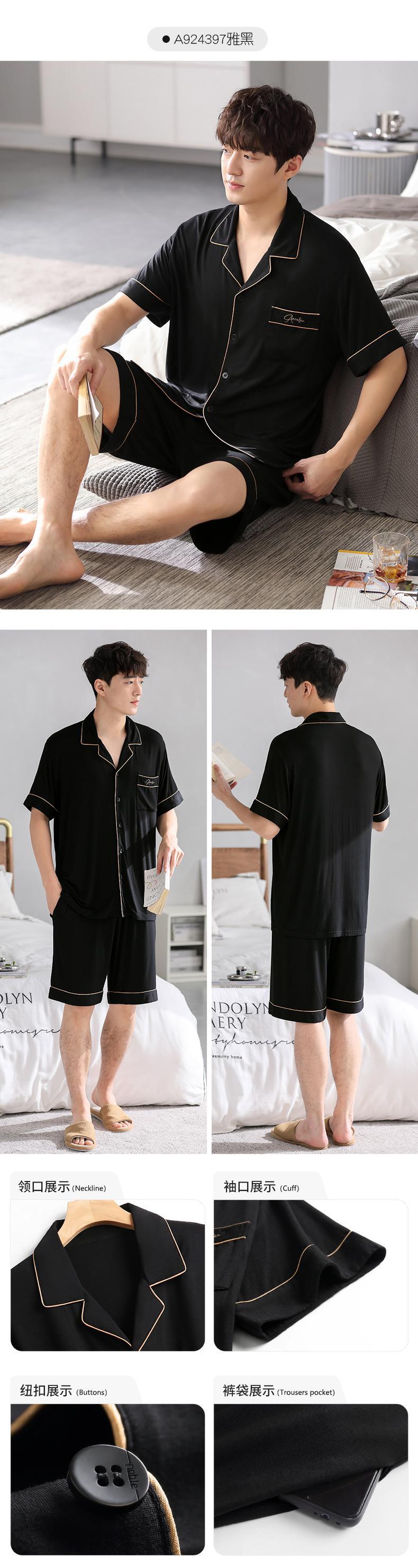 【涼しさ】モーダルパジャマメンズ夏夏半袖ショーツホームサービスメンズ薄手のアイスシルクスーツ jial23852101637