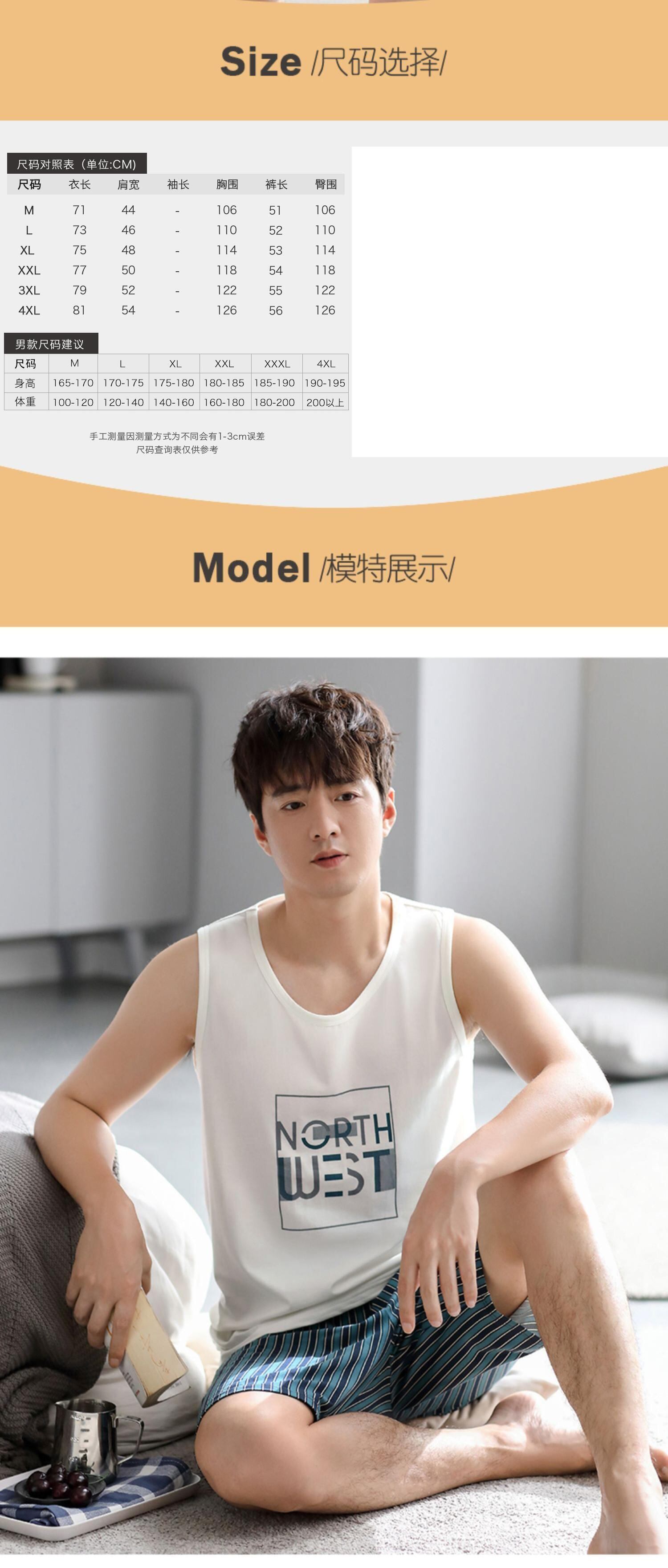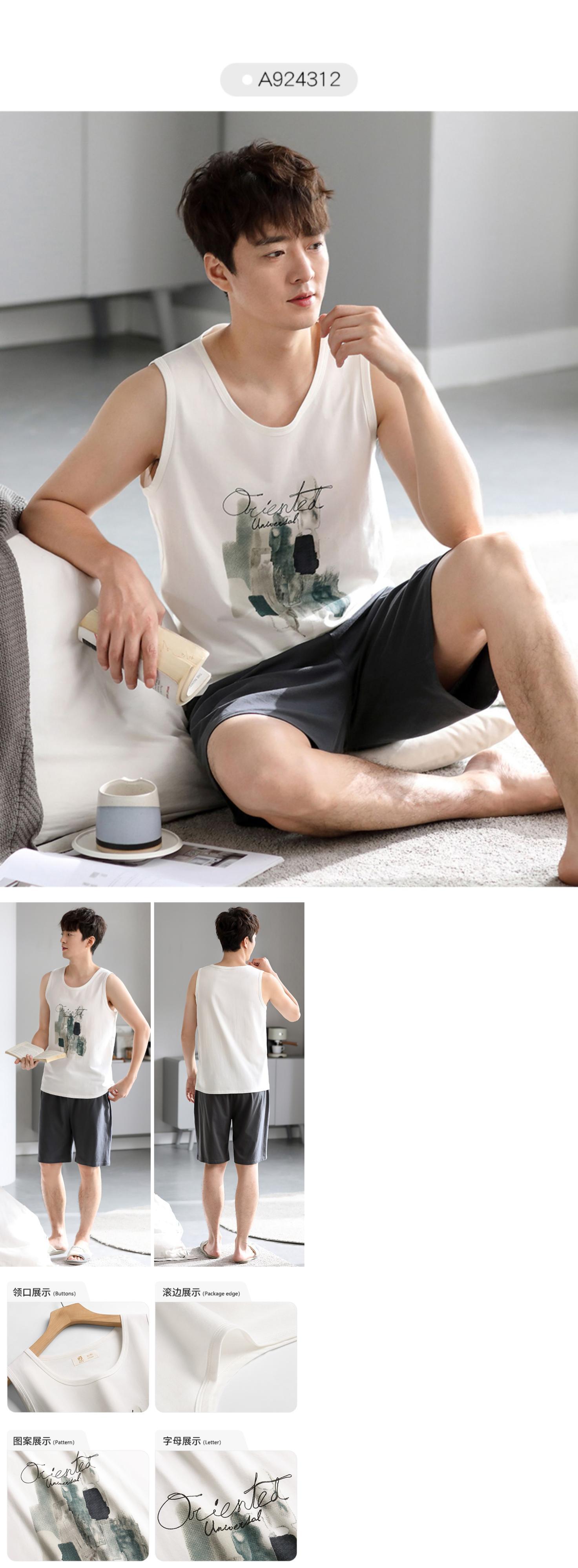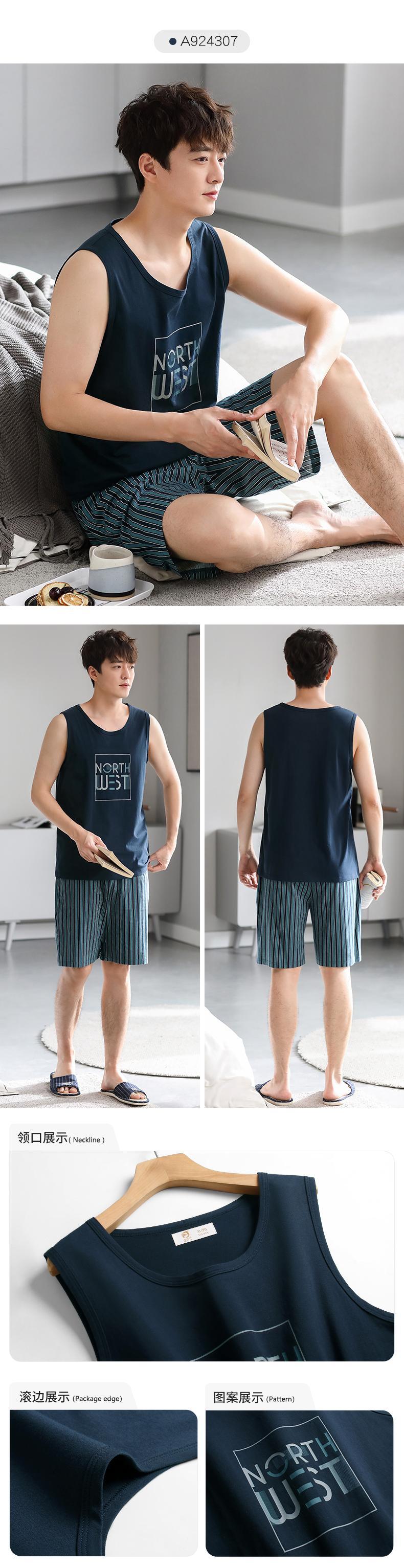 Carrefineパジャマメンズサマーコットンベストノースリーブショーツホームウェアメンズサマーシンラージサイズスーツ jial62120935625