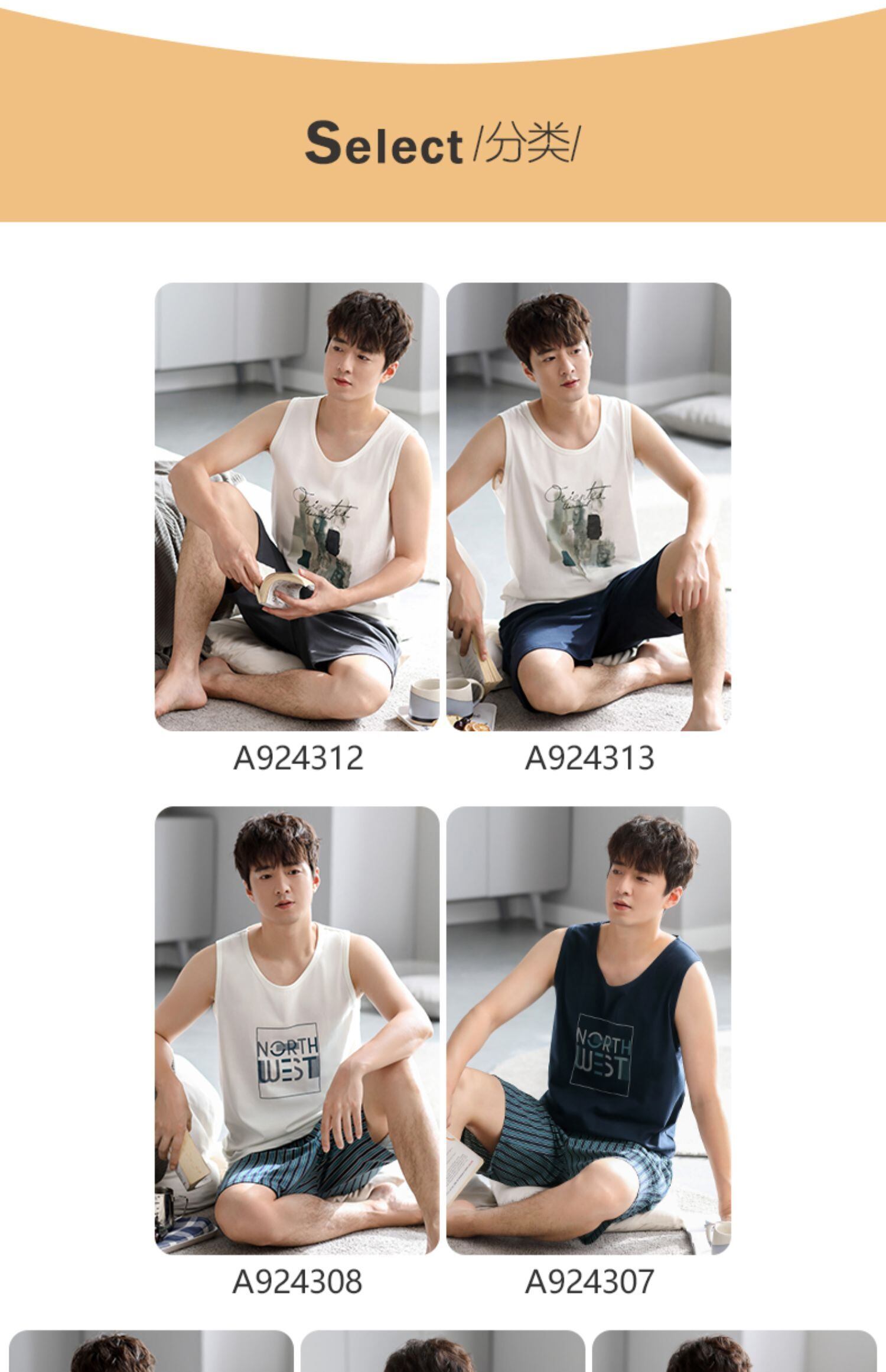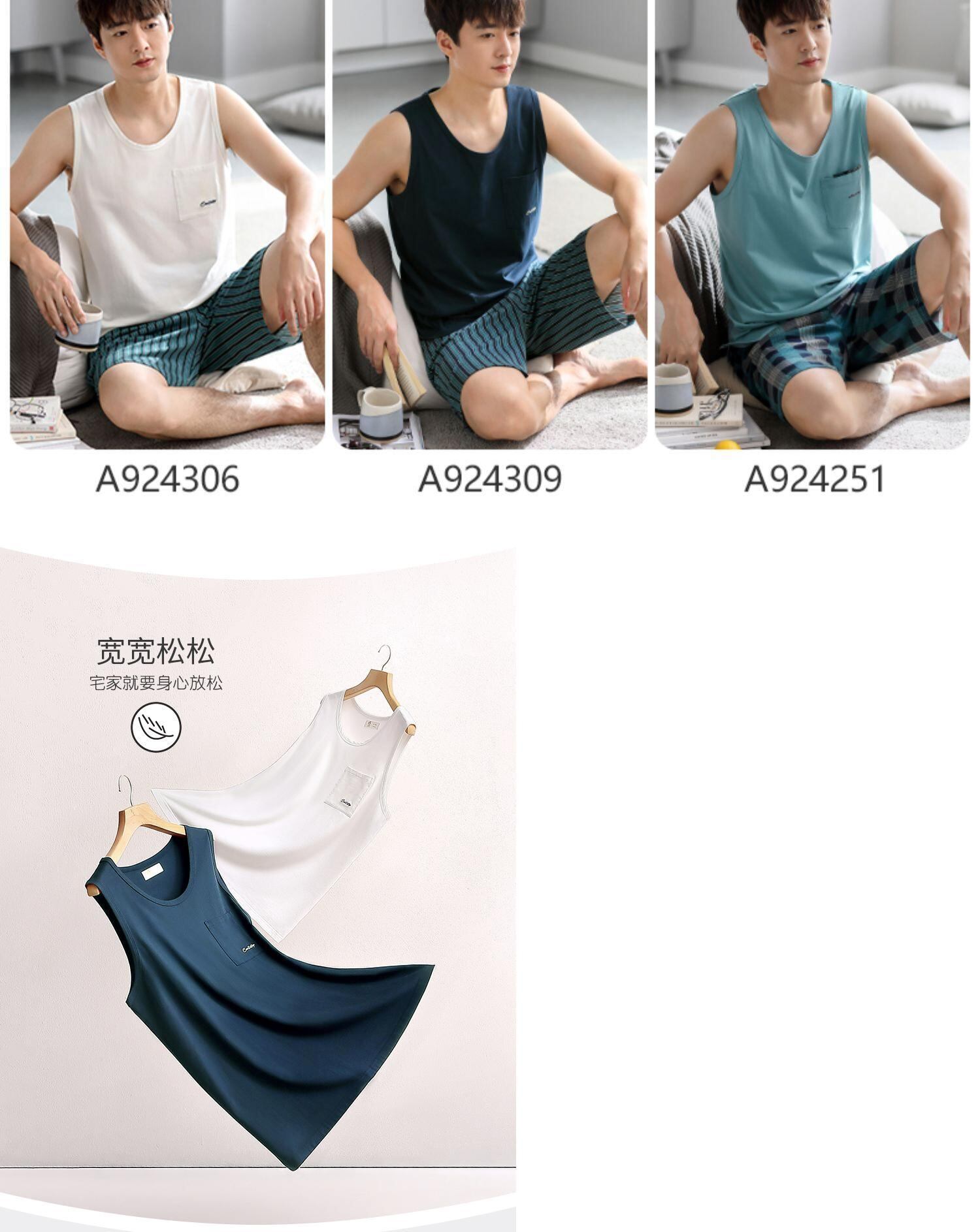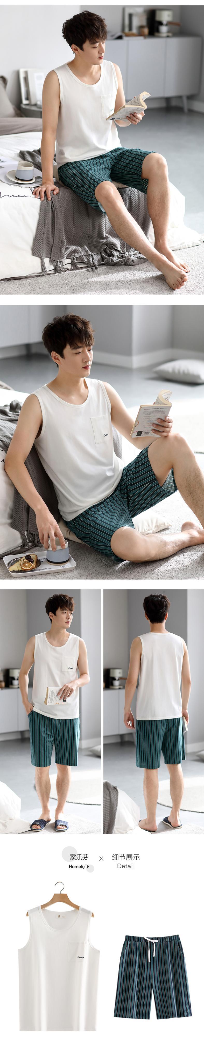 Carrefineパジャマメンズサマーコットンベストノースリーブショーツホームウェアメンズサマーシンラージサイズスーツ jial13327875552