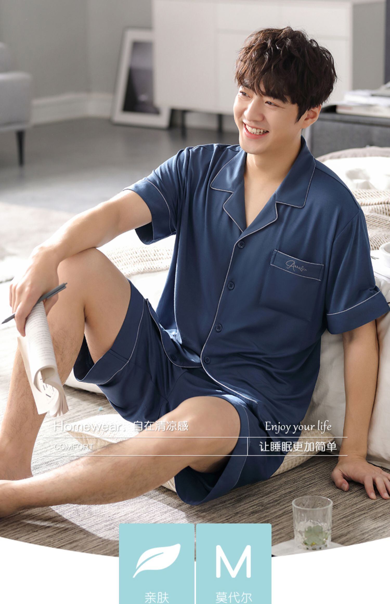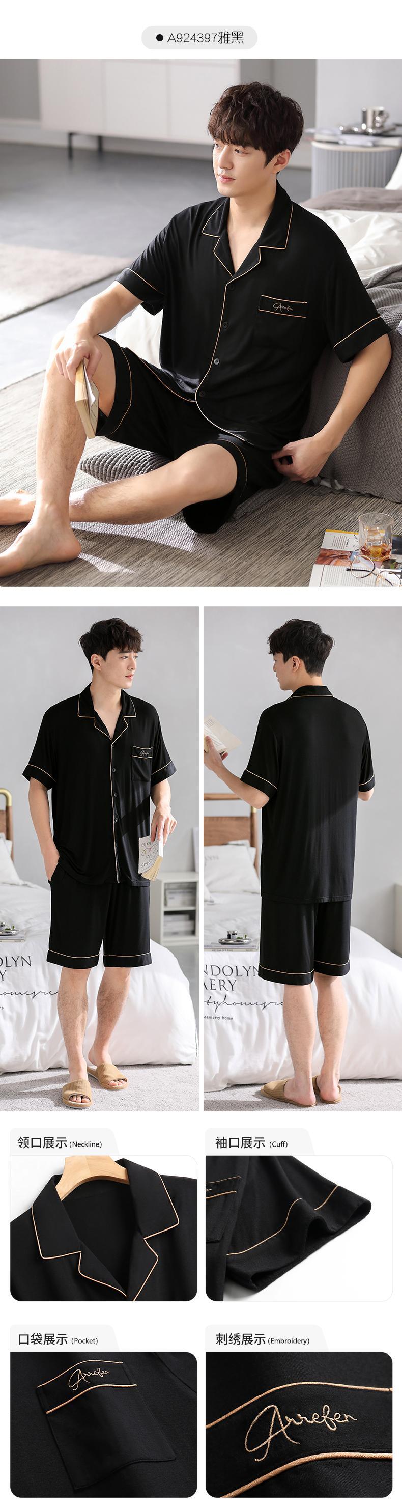 【涼しさ】モーダルパジャマメンズ夏夏半袖ショーツホームサービスメンズ薄手のアイスシルクスーツ jial73726251605