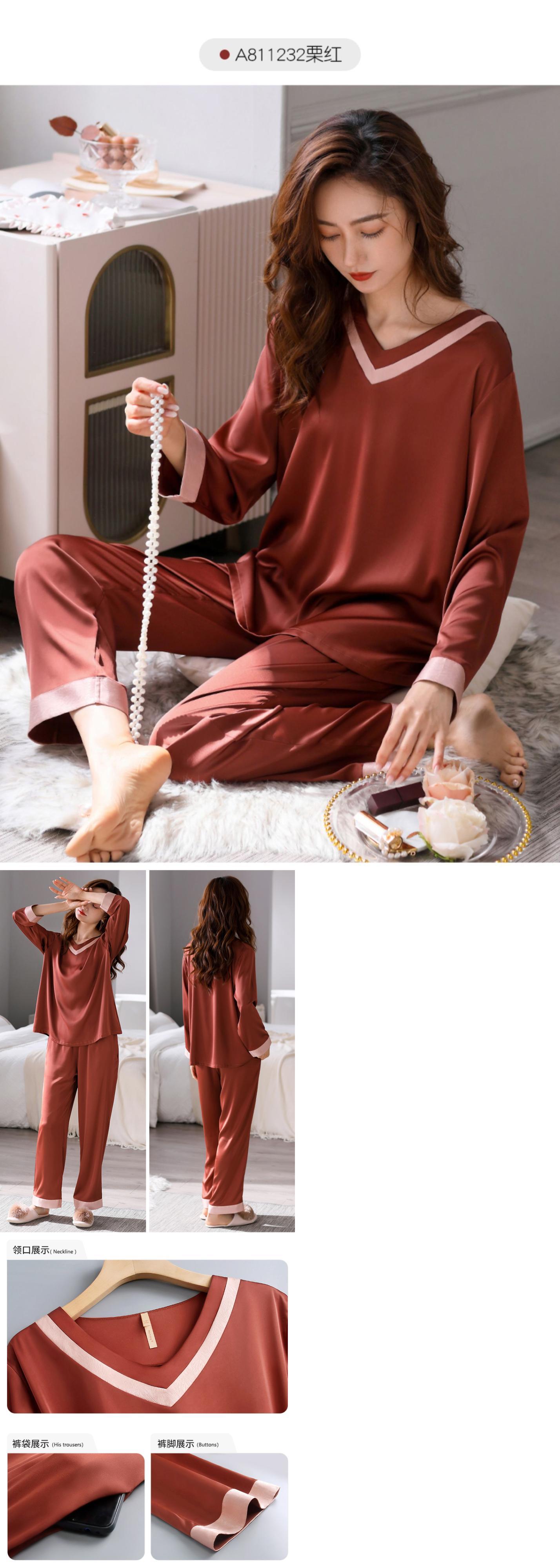 Carrefineパジャマレディース夏夏シルクアイスシルク長袖家庭服シミュレーションシルク春と秋の薄いスーツ jial5245929099