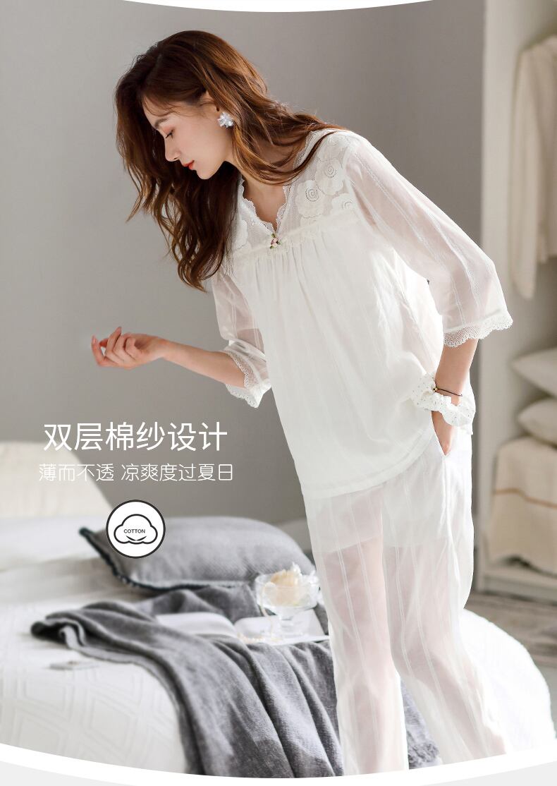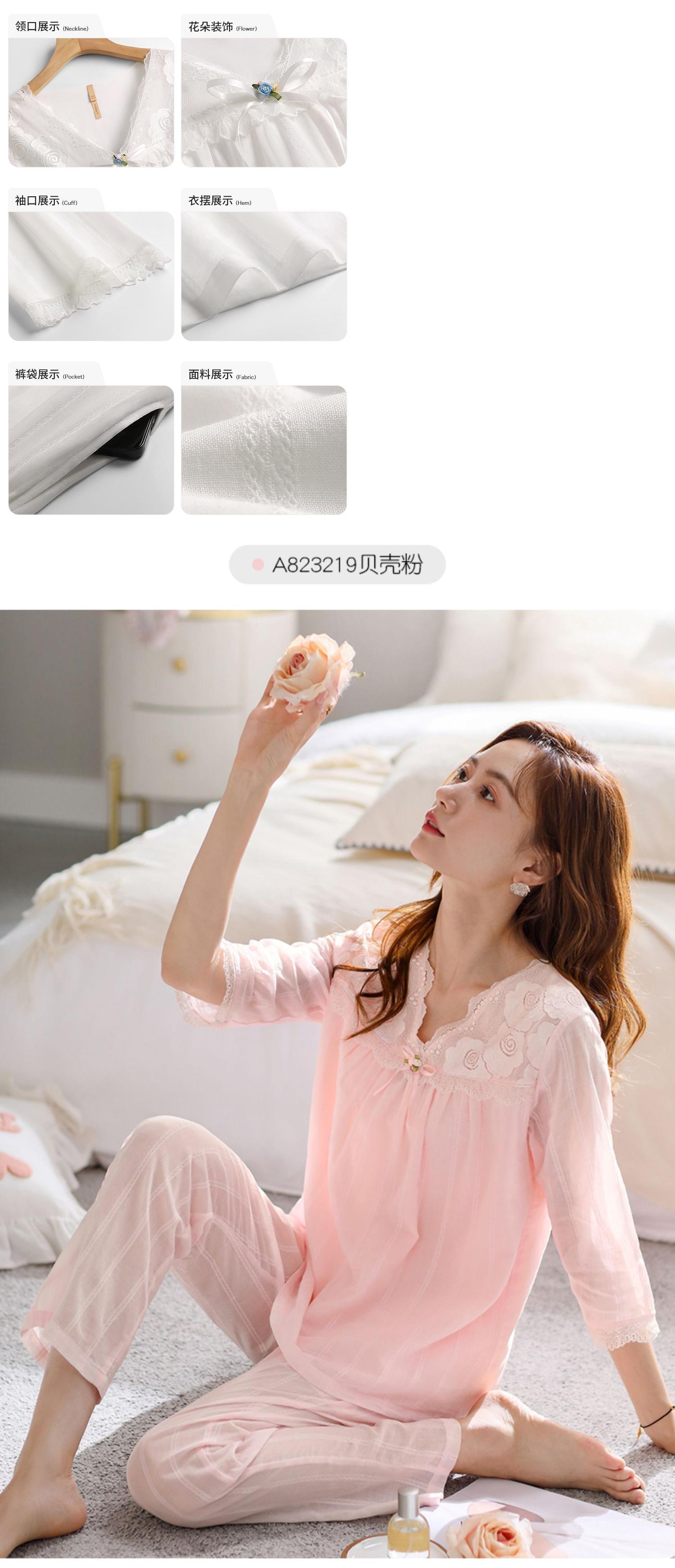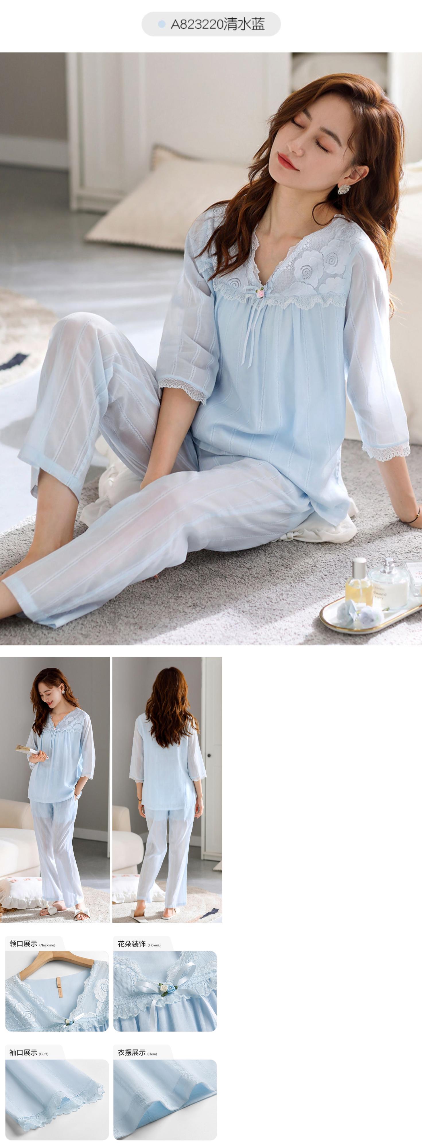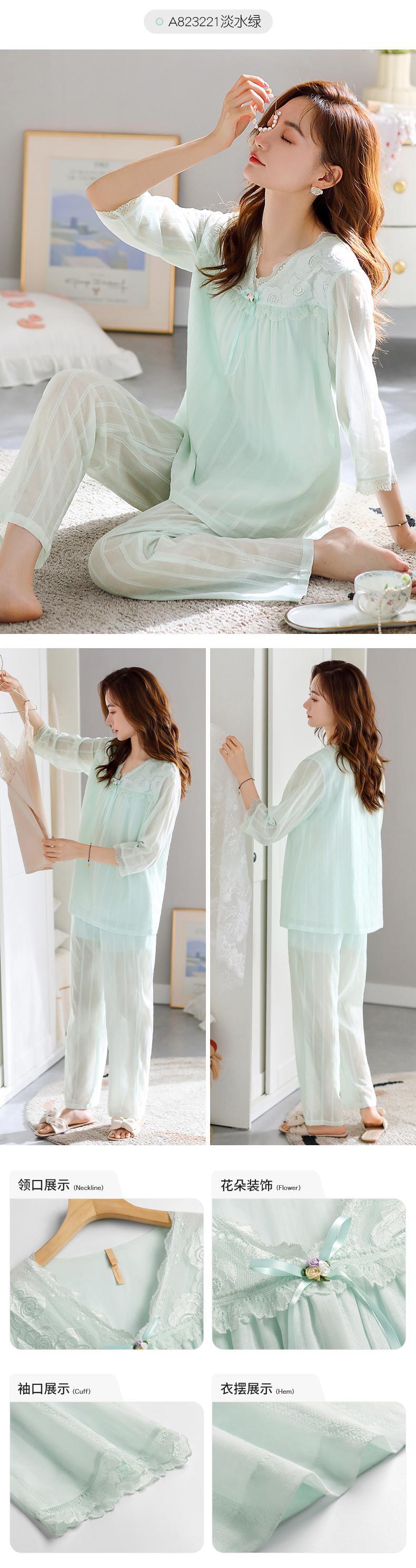 綿ガーゼパジャマレディース春秋綿七分袖長袖家庭服春夏薄手のスーツ jial94973457585