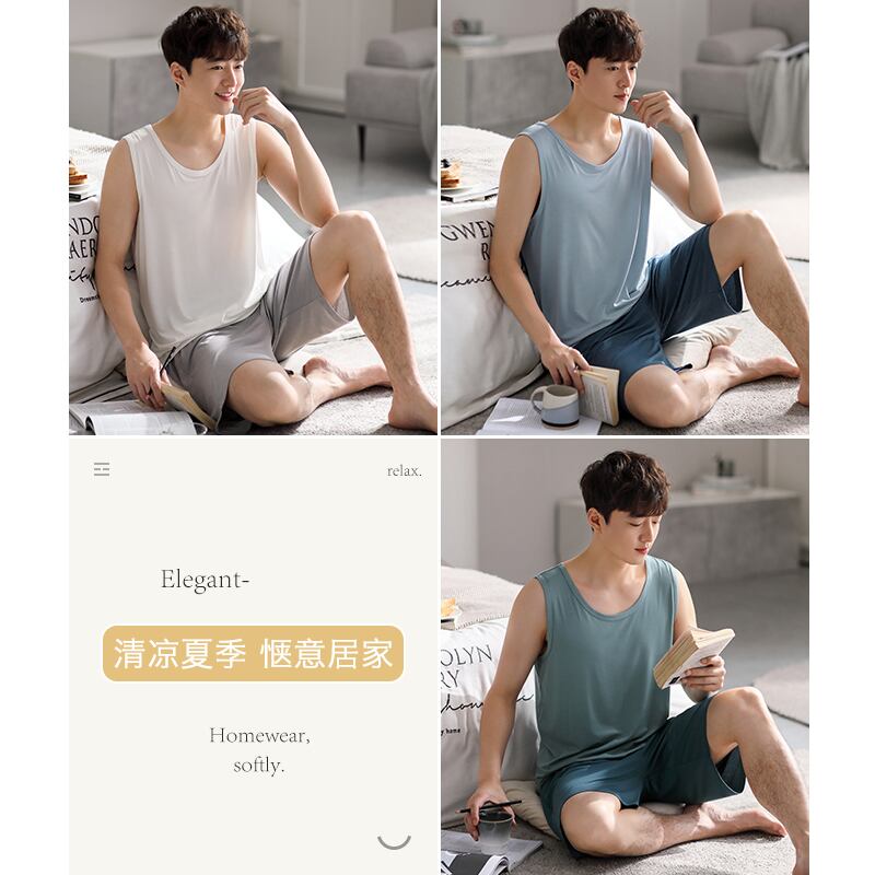 Carrefineパジャマメンズ夏夏モーダルベストノースリーブラウンジウェアメンズ薄いアイスシルクメンズスーツ jial45428697088