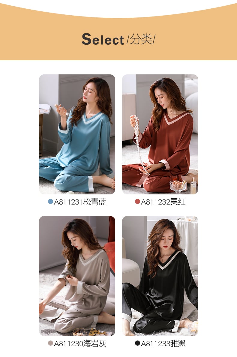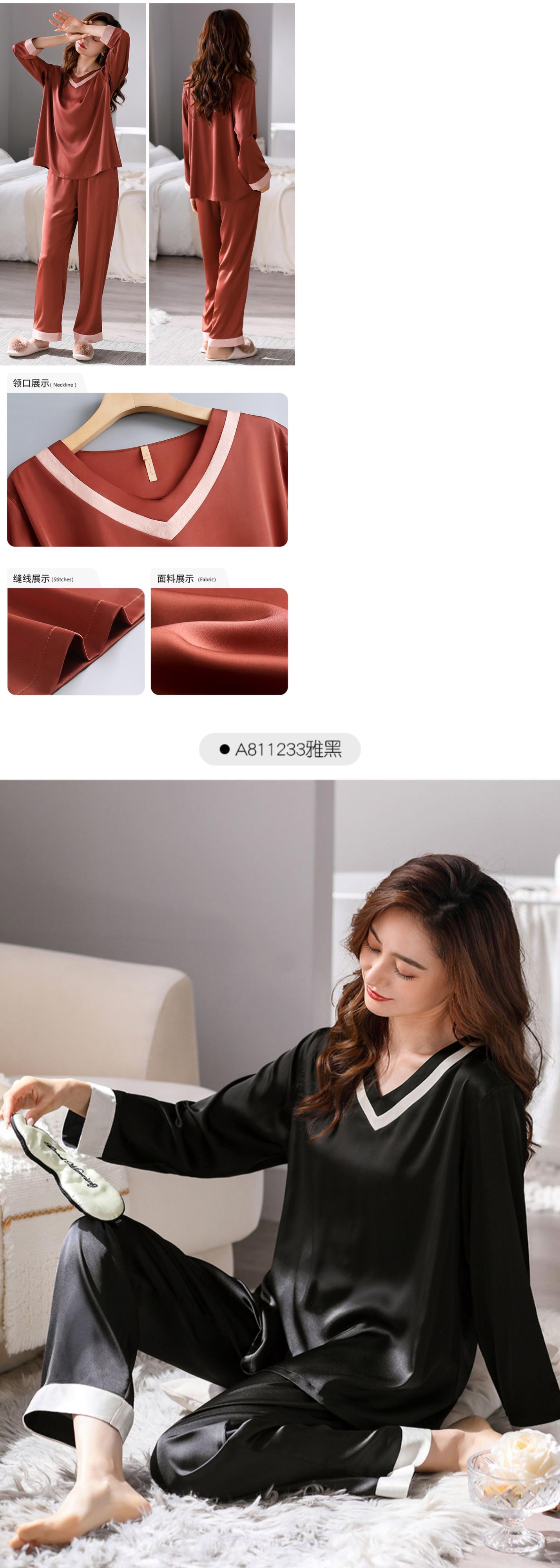 Carrefineパジャマレディース夏夏シルクアイスシルク長袖家庭服シミュレーションシルク春と秋の薄いスーツ jial91878133060