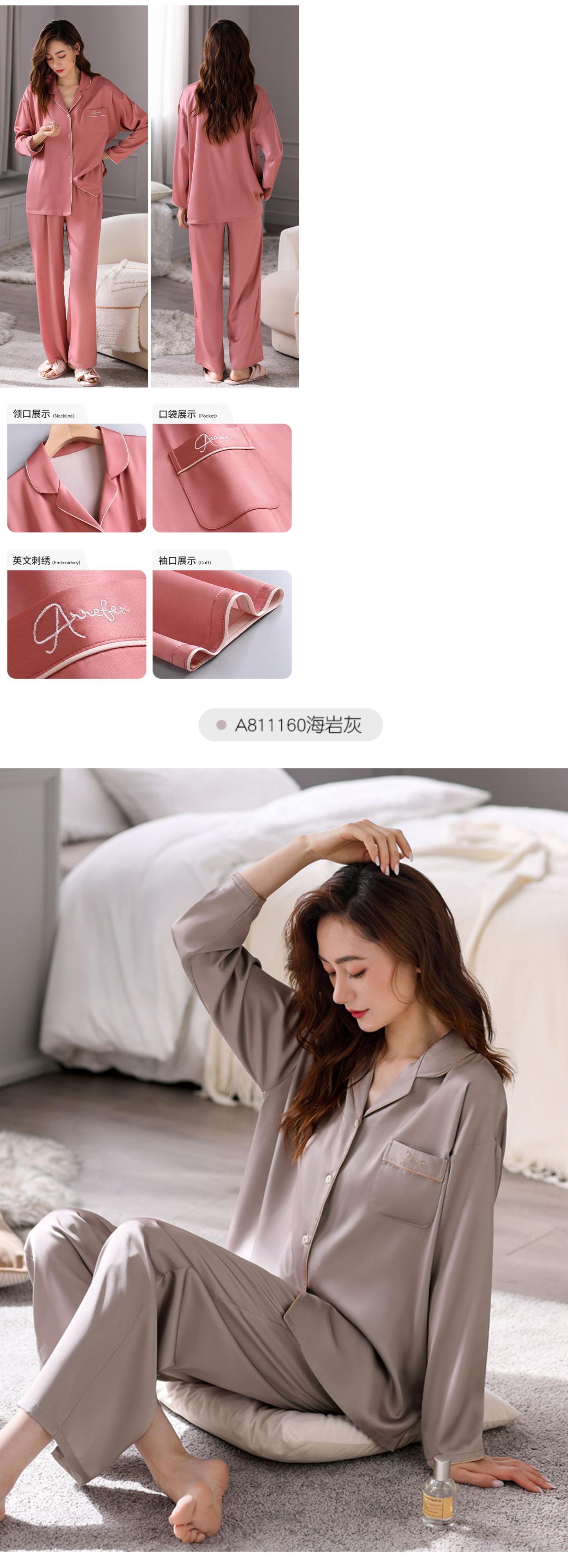 Carrefineパジャマレディース夏夏シルクアイスシルク長袖家庭服シミュレーションシルク春と秋の薄いスーツ jial96005564929