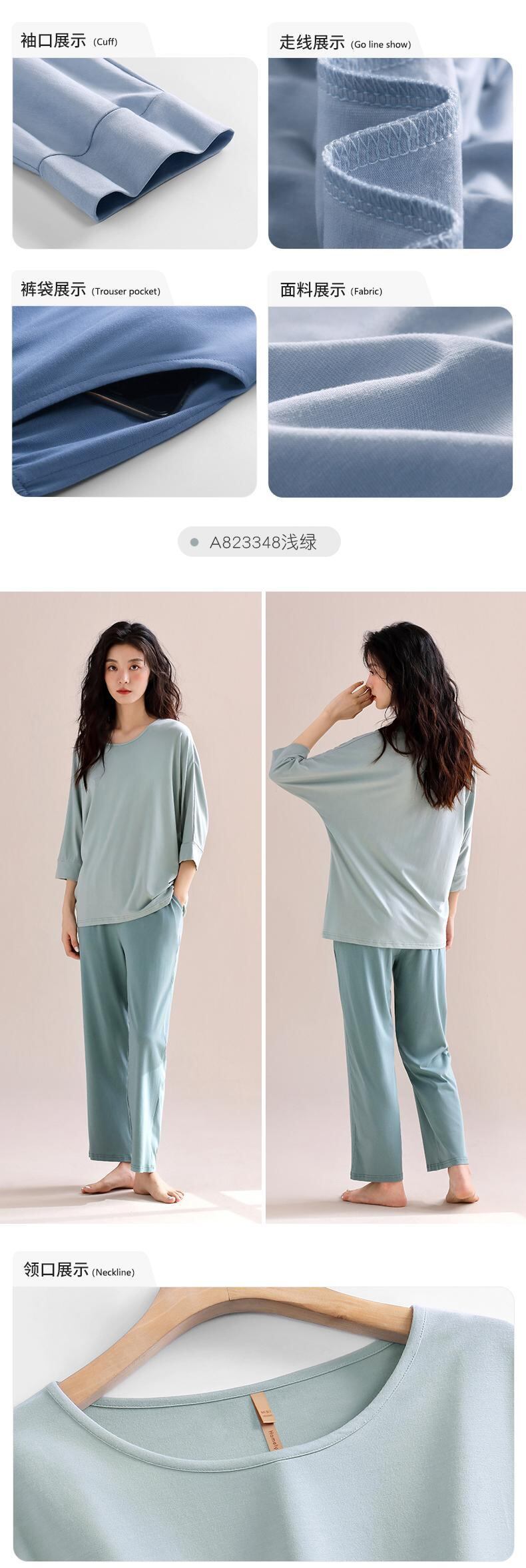 パジャマ 春 秋 秋 モーダル ホームウェア 七分袖 長袖 アイスシルク 薄手 サマースーツ jial92924513533
