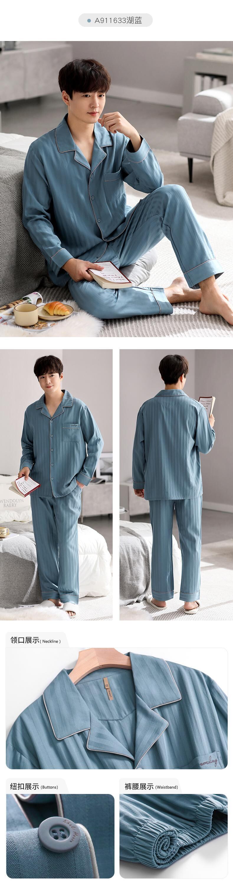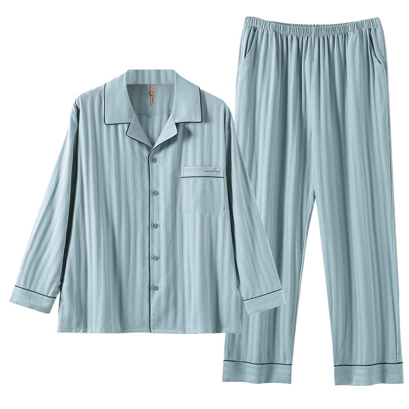 【綿ガーゼ織り】 カルフィーネ パジャマ メンズ 春秋 綿 長袖 家庭服 夏 薄手 スーツ jial29869803621