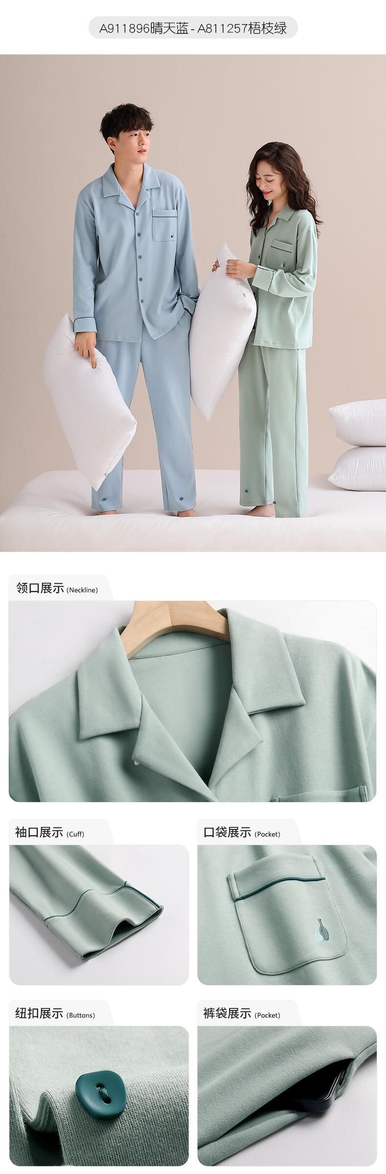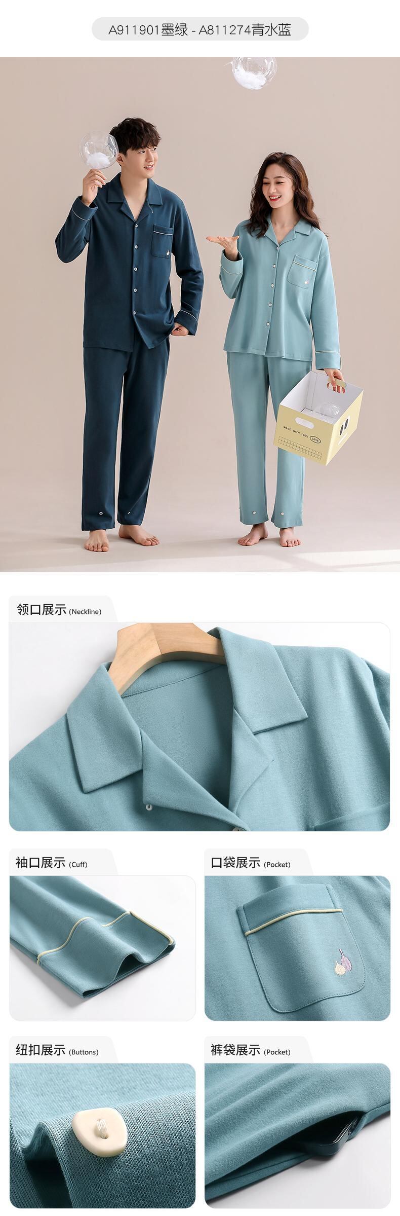 【柔らかさ】カルフィーネ カップル パジャマ 春秋 秋 純綿 長袖 ホームウェア 男女兼用 スーツ jial50022110888