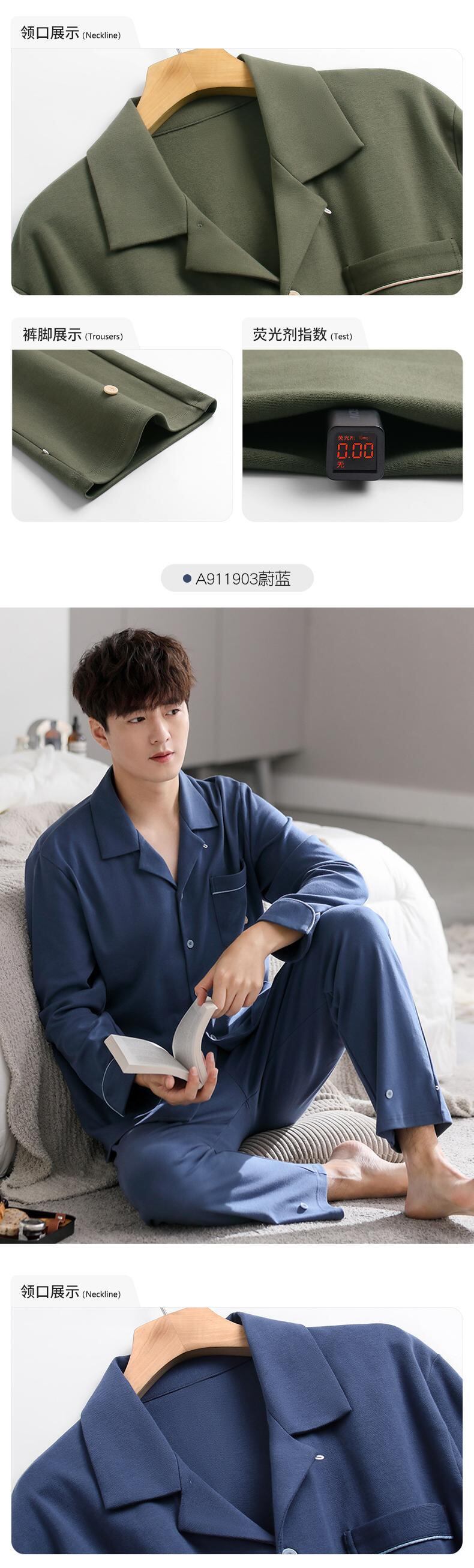 【同スタイルショッピングモール】カルフィーネパジャマメンズ春秋コットン長袖ルームウェアメンズプラスサイズスーツ jial2287921973