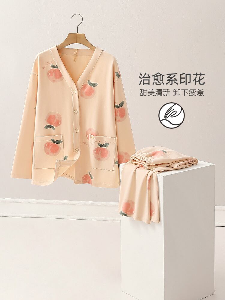 Carrefine パジャマ春秋秋秋の綿長袖夏薄型ホームウェアプラスサイズのスーツ jial95868073252