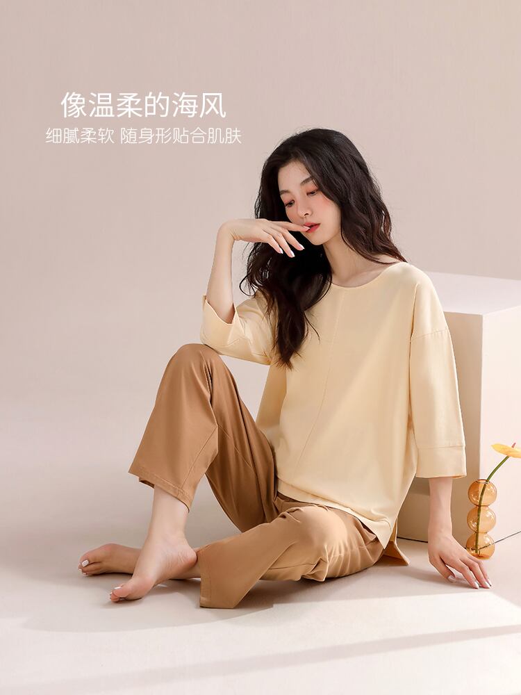 パジャマ、レディース春、秋、秋、純綿ホームウェア、七分袖、長袖、薄手夏モデル、カジュアルウェア jial90419542588