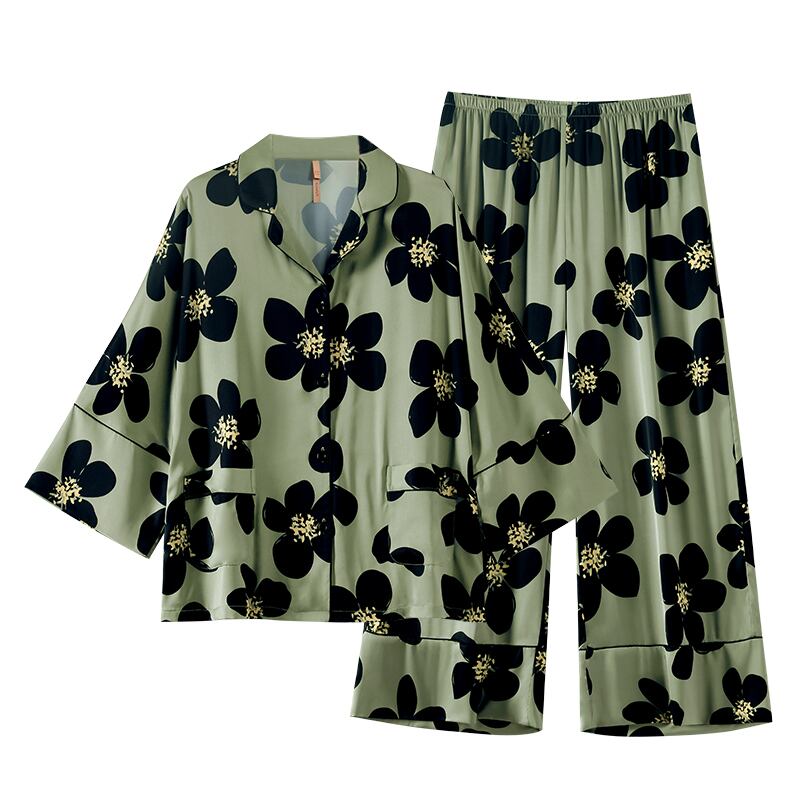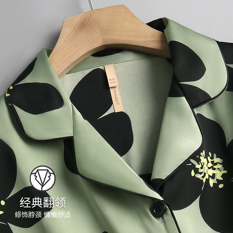 Carrefine パジャマレディース春と秋のシルクアイスシルク長袖ホームウェア女性のシミュレーションシルク薄い夏スーツ jial15866408408
