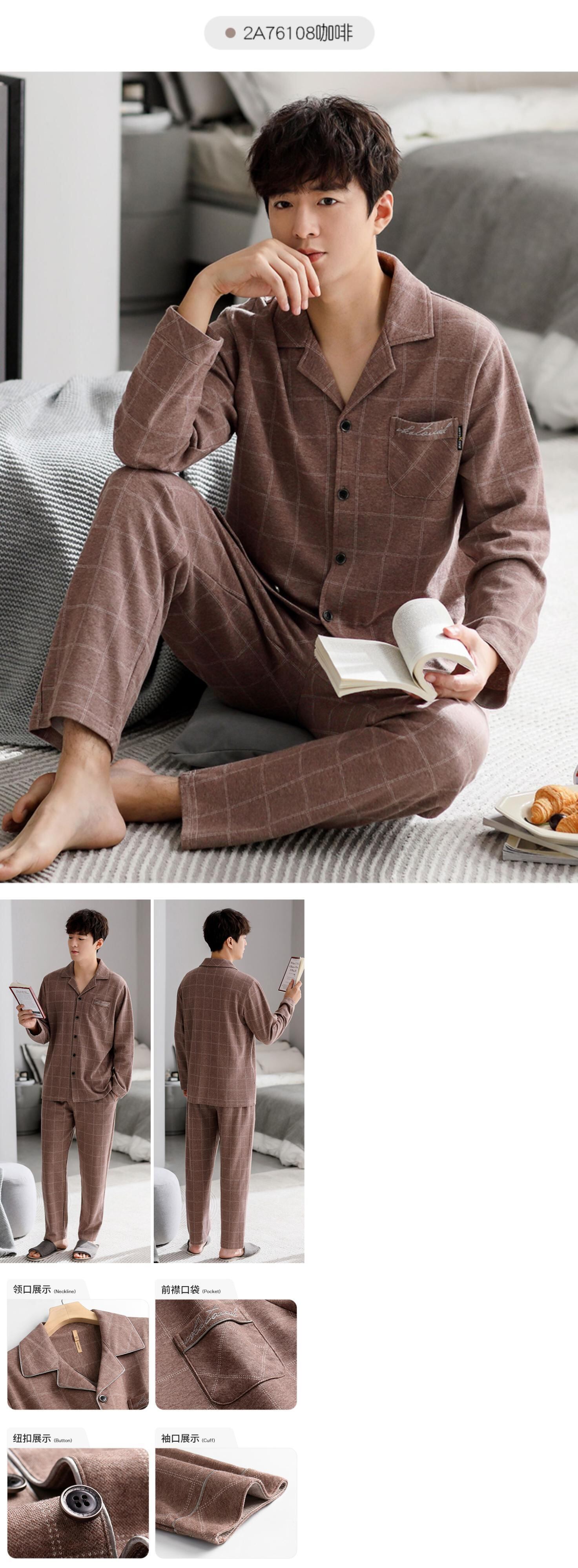 【色綿ヤスリ】ジアレフェンパジャマメンズ春秋コットン長袖ホーム服メンズ増厚スーツ jial75437951556