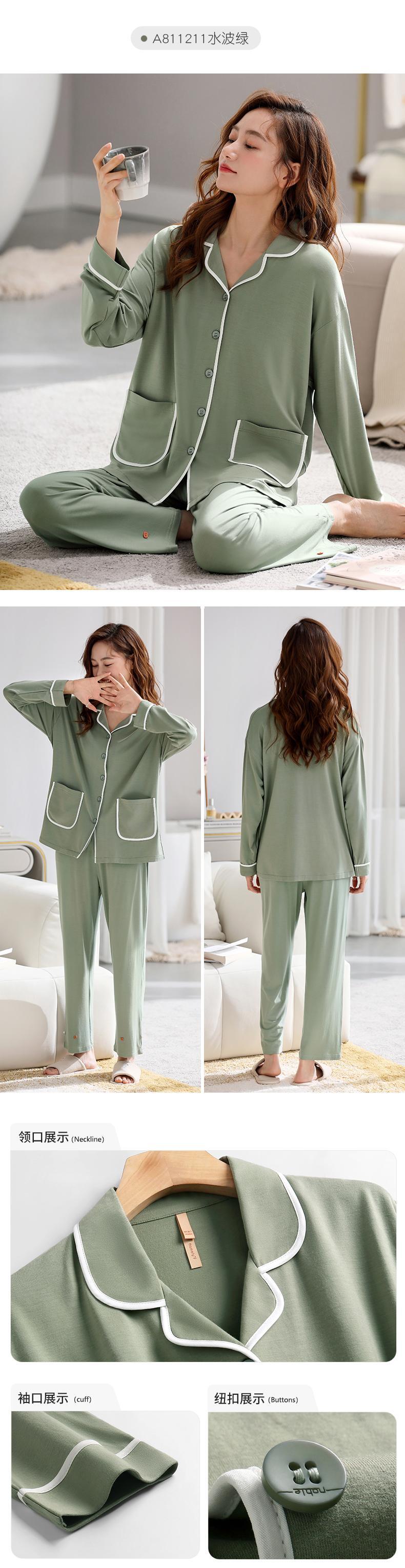 Carrefine パジャマ春と秋の女性の秋のモーダル長袖ホームウェア夏のアイスシルク薄いスーツ jial10223130741