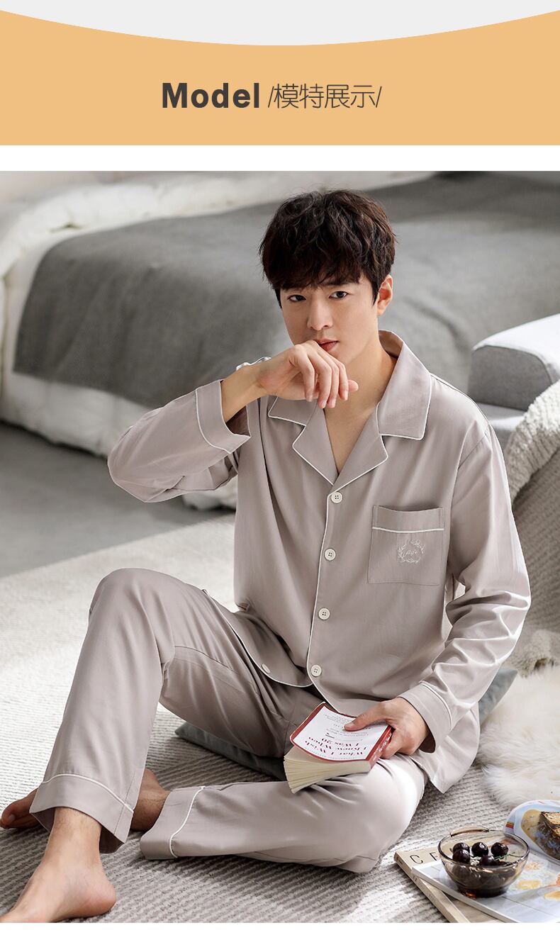 【レンチング モダール】パジャマ メンズ 春秋 モダール 長袖 ルームウェア メンズ アイスシルク 夏 薄手 jial24857189439