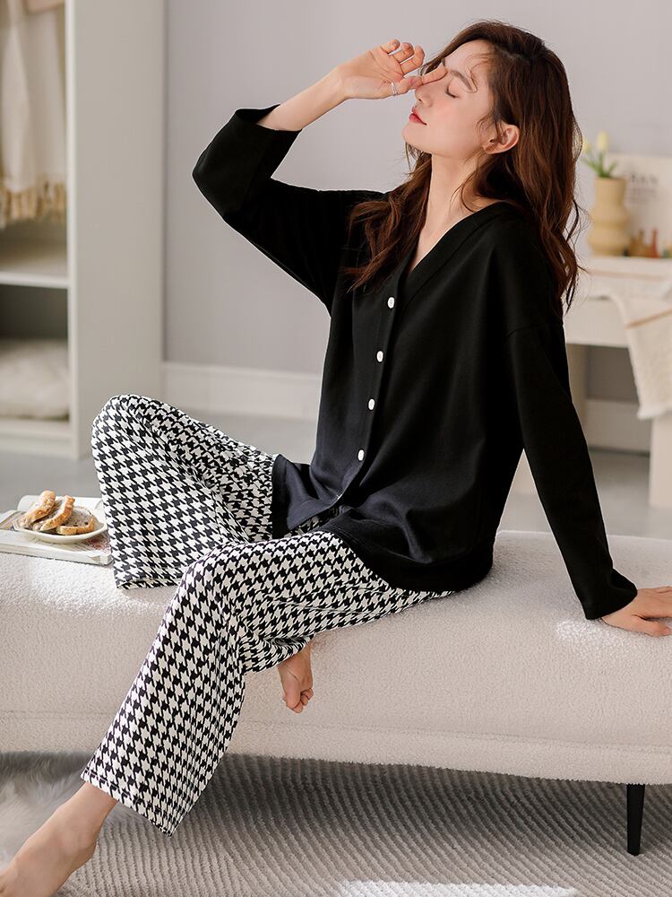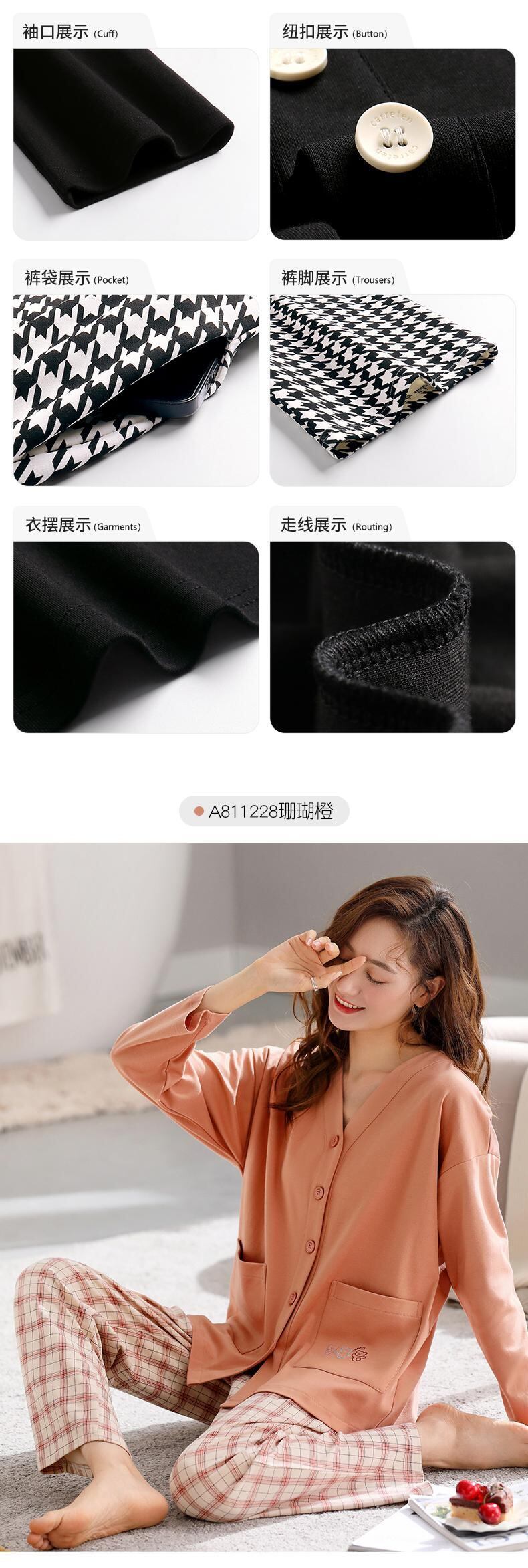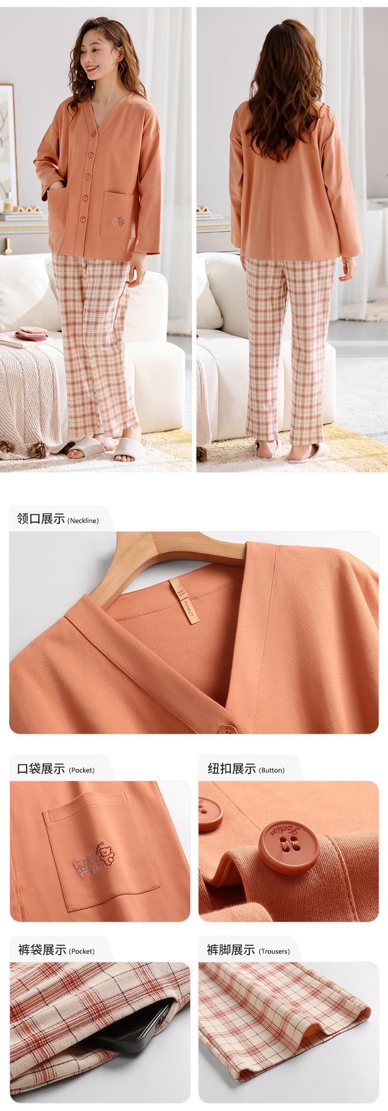 Carrefine パジャマ春秋秋秋の綿長袖夏薄型ホームウェアプラスサイズのスーツ jial23687510086