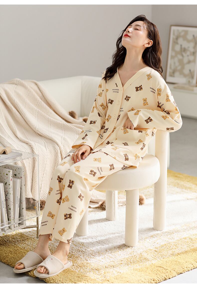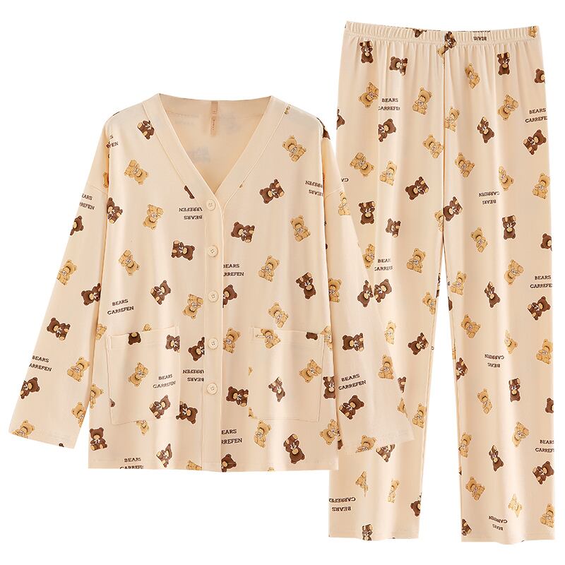 Carrefine パジャマ春秋秋秋の綿長袖夏薄型ホームウェアプラスサイズのスーツ jial29843596527