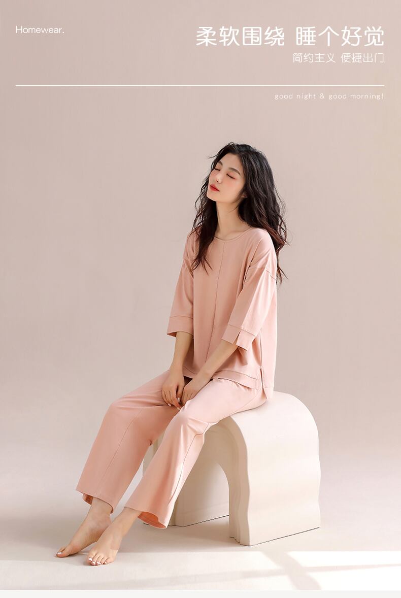 パジャマ、レディース春、秋、秋、純綿ホームウェア、七分袖、長袖、薄手夏モデル、カジュアルウェア jial41074379658
