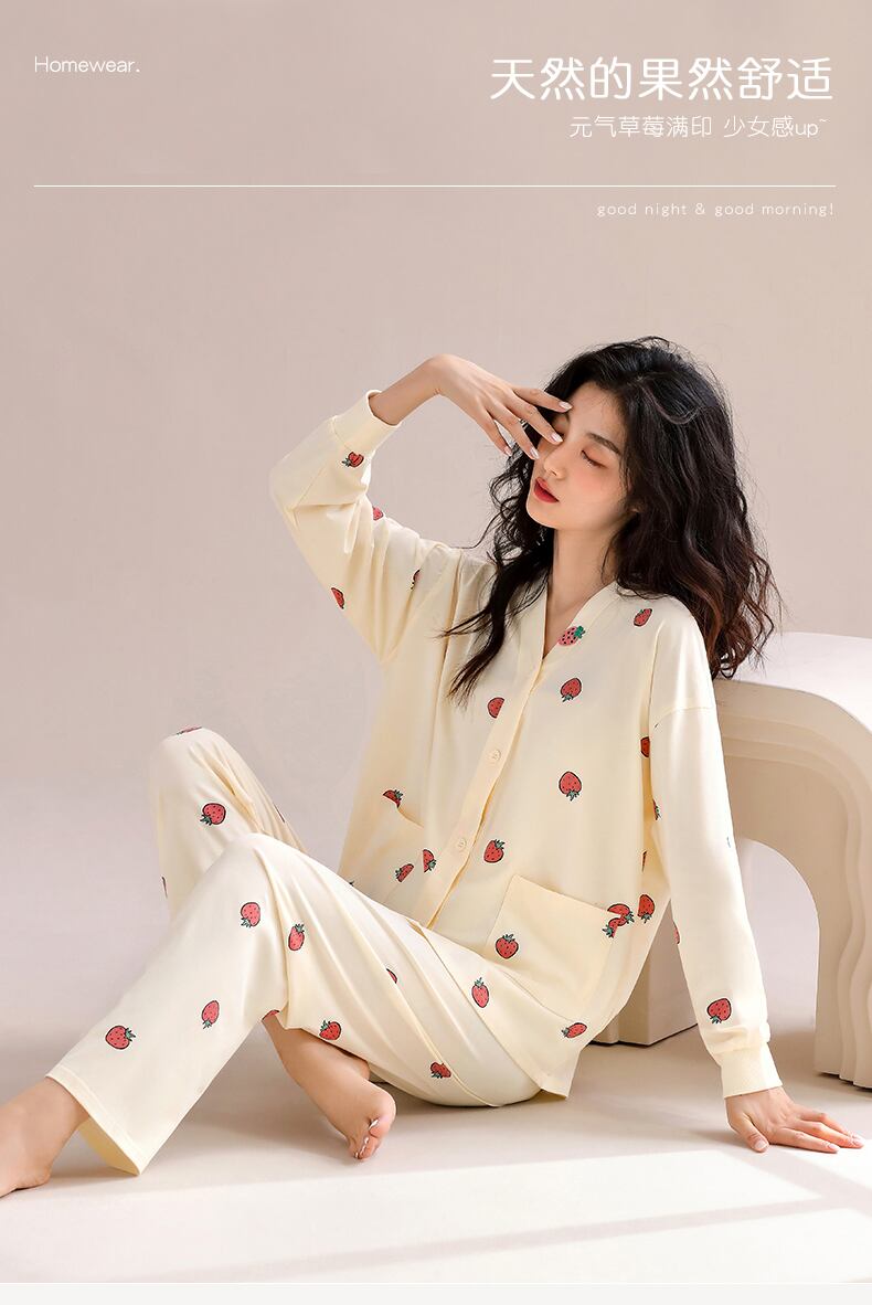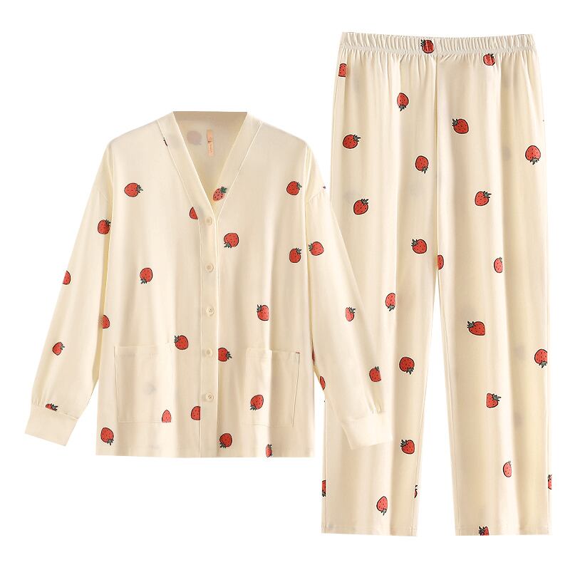 Carrefine パジャマ春秋秋秋の綿長袖夏薄型ホームウェアプラスサイズのスーツ jial57271592049